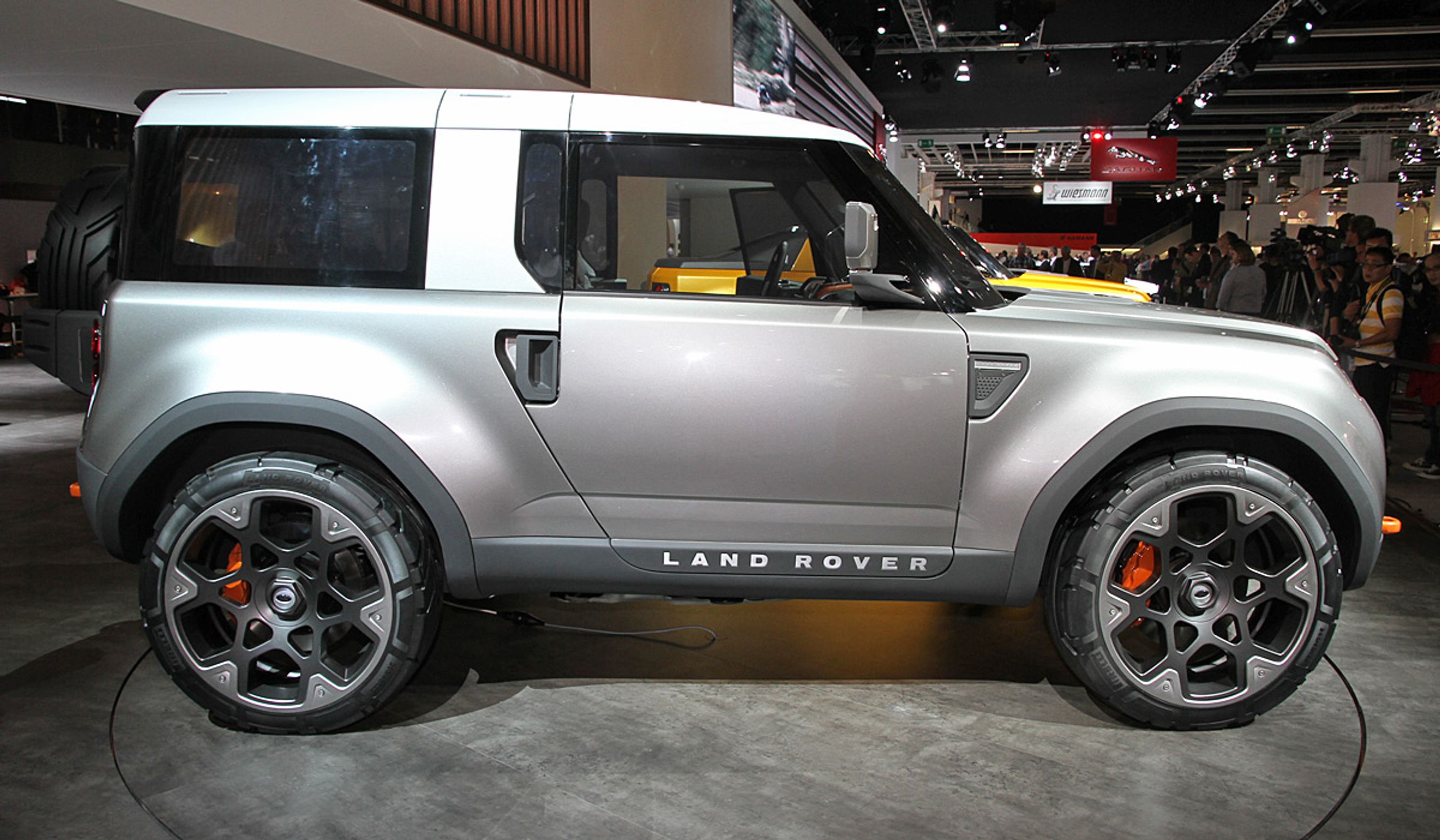 På Frankfurt-udstillingen vises også – i en meget gul lakering – et åbent, roadster-agtigt koncept. Det er nok kun for sjov, at land Rover viser den. Men en traditionel kaleche-model kan man nok vente sig, når bilen en gang er klar.