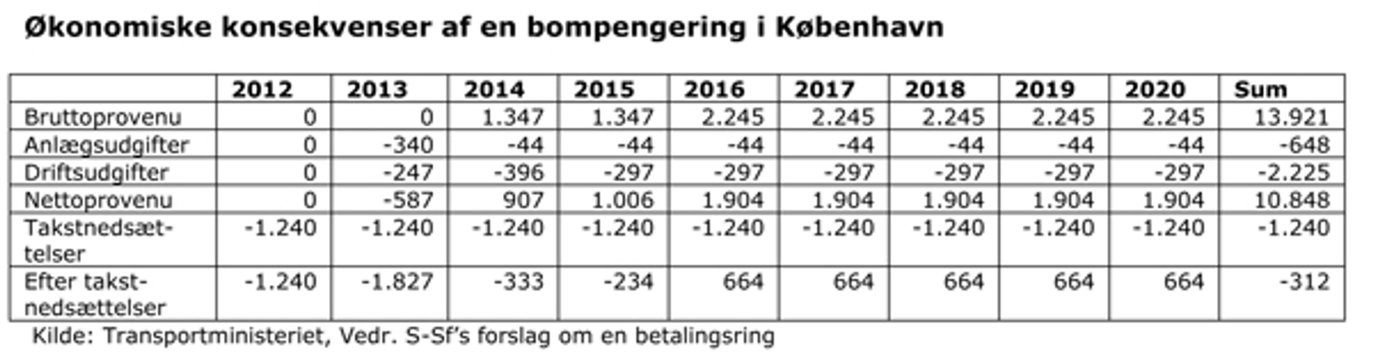 Transportministeriet har anfægtet flere forhold i det fremsatte forslag om bompenge i København. Det samlede resultat af disse forhold gør, at ministeriet ikke forventer, at en bompengering vil generere et samlet overskud før 2021, hvis taksterne i den kollektive trafik nedsættes med op til 40 pct. fra 2012. Det fremsatte forslag om en bompengering er baseret på en analyse udarbejdet af konsulentvirksomheden Tetraplan for Københavns Kommune og 15 omegnskommuner fra april 2008.