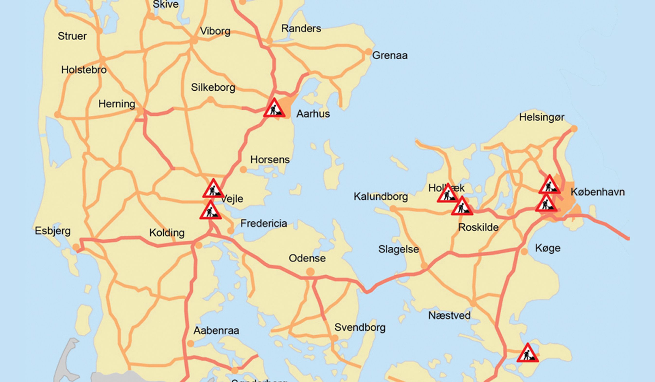 Sommertid er både tid til feriekørsel og til store vejarbejder. Her er de ti, som nok vil give de største gener i Danmark.