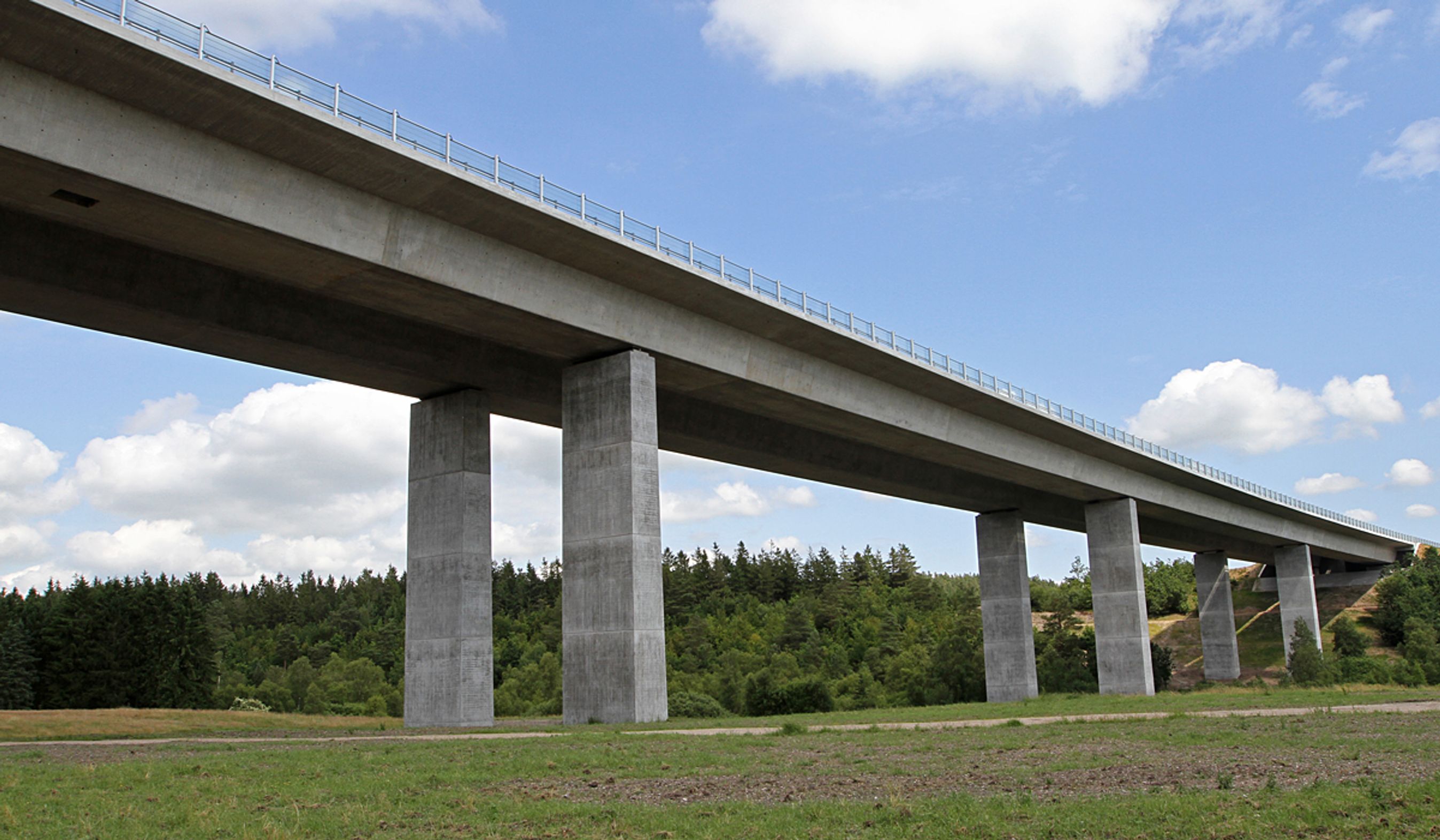 Den nye motorvejsstrækning går over Danmarks længste dalbro, en elegant svunget højbro. Den 730 lange dalbro er i Danmark kun overgået af Harald Blåtands 750 meter lange bro over Vejle Ådal, men den kunne ikke byde på samme flotte udsigt som Funderbroen i 30 meters højde.