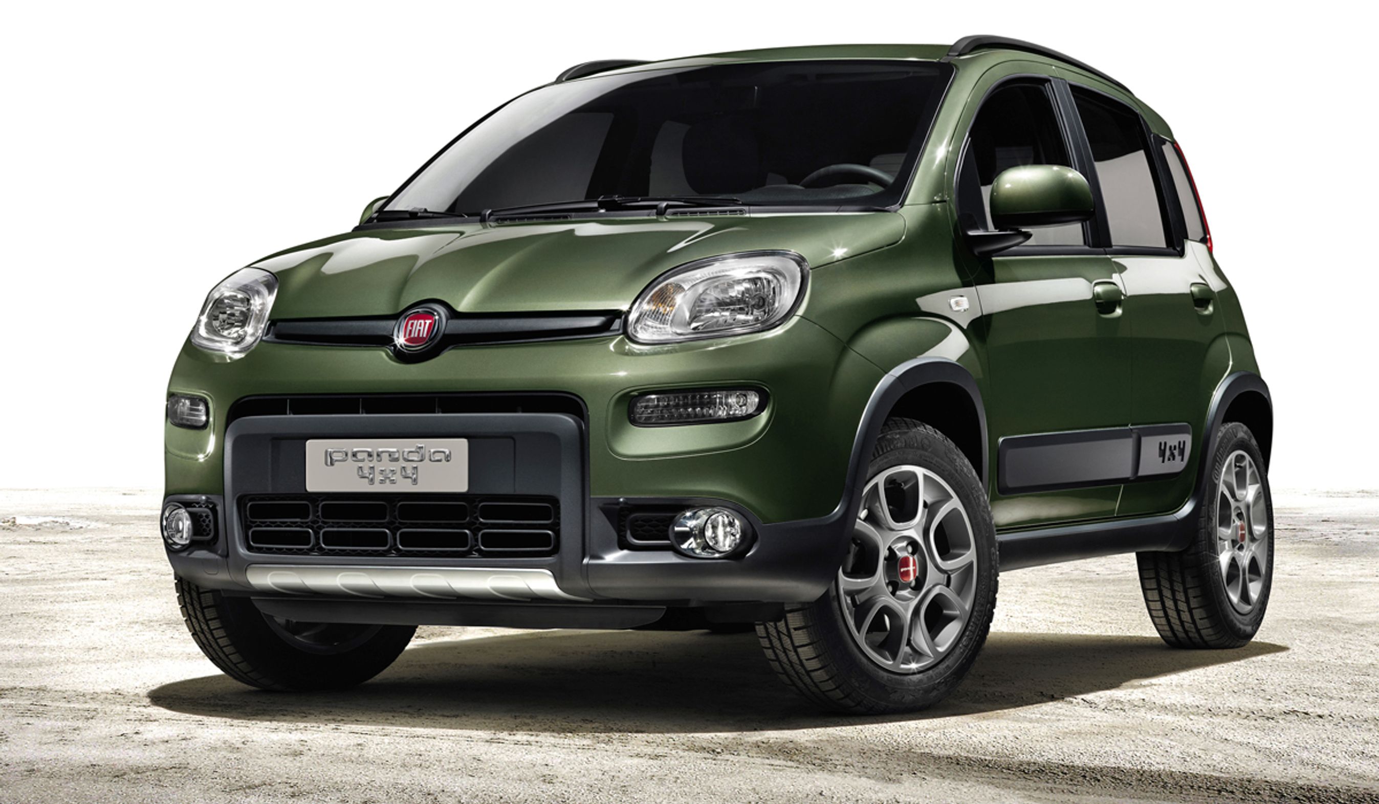 Fiat Panda 4x4 har fået tilført de obligatoriske SUV-designelementer. 4x4-versionen fås i to selvstændige farver, Sicilien-orange og denne Toscana-grøn.