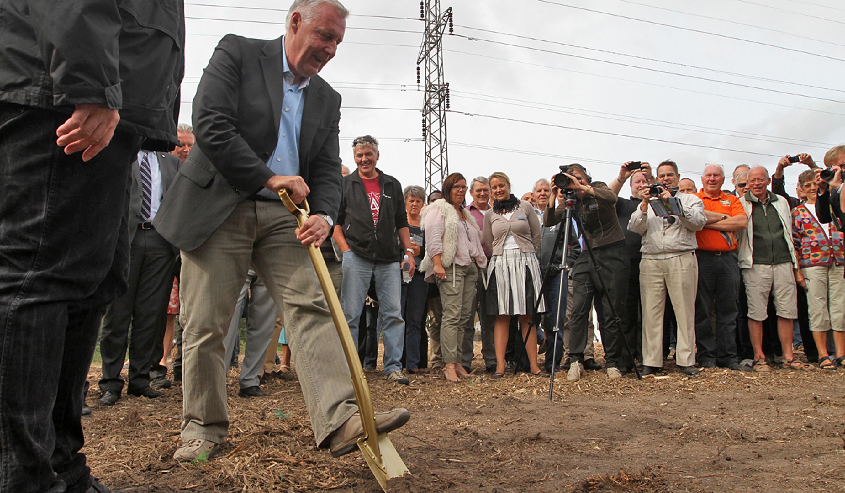 Med en "forgyldt" spade tog transportministeren 6. september det første, meget lille spadestik til jernbane og motorvej.