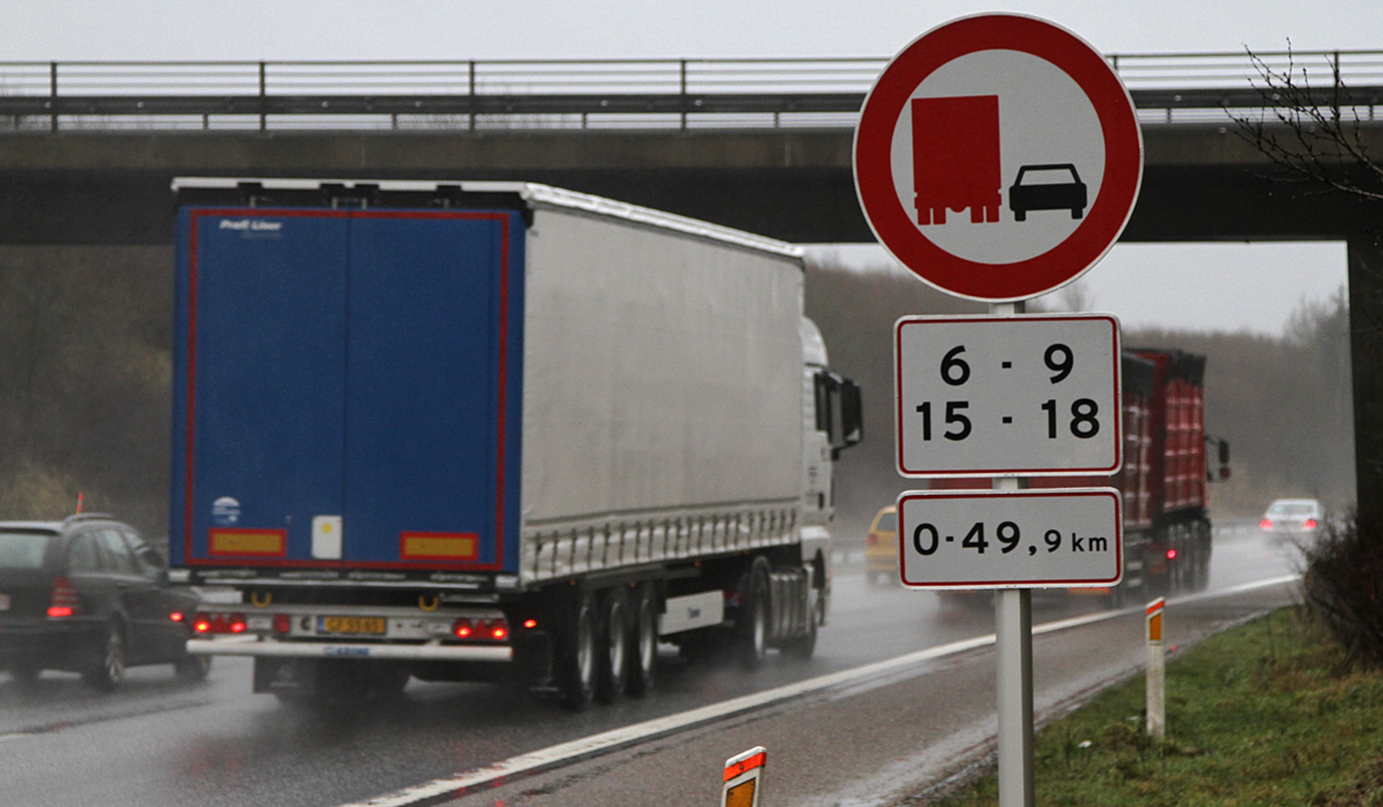 Både førere af personbiler og lastbiler er tilfredse med overhalingsforbud for lastbiler. Reglerne ændres nu nogle steder, så overhalingsforbuddet ikke skal gælde personbiler med påhængsvogn.