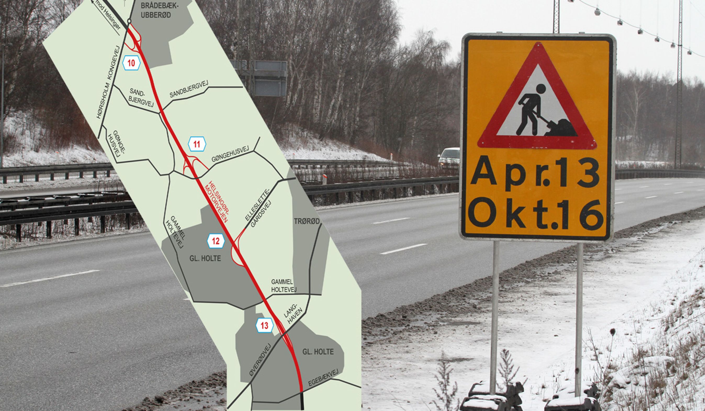 Den stærkt trafikerede motorvej skal udvides fra fire til seks spor på en 4,5 km strækning mellem Gl. Holte <13> og Hørsholm S <10>.