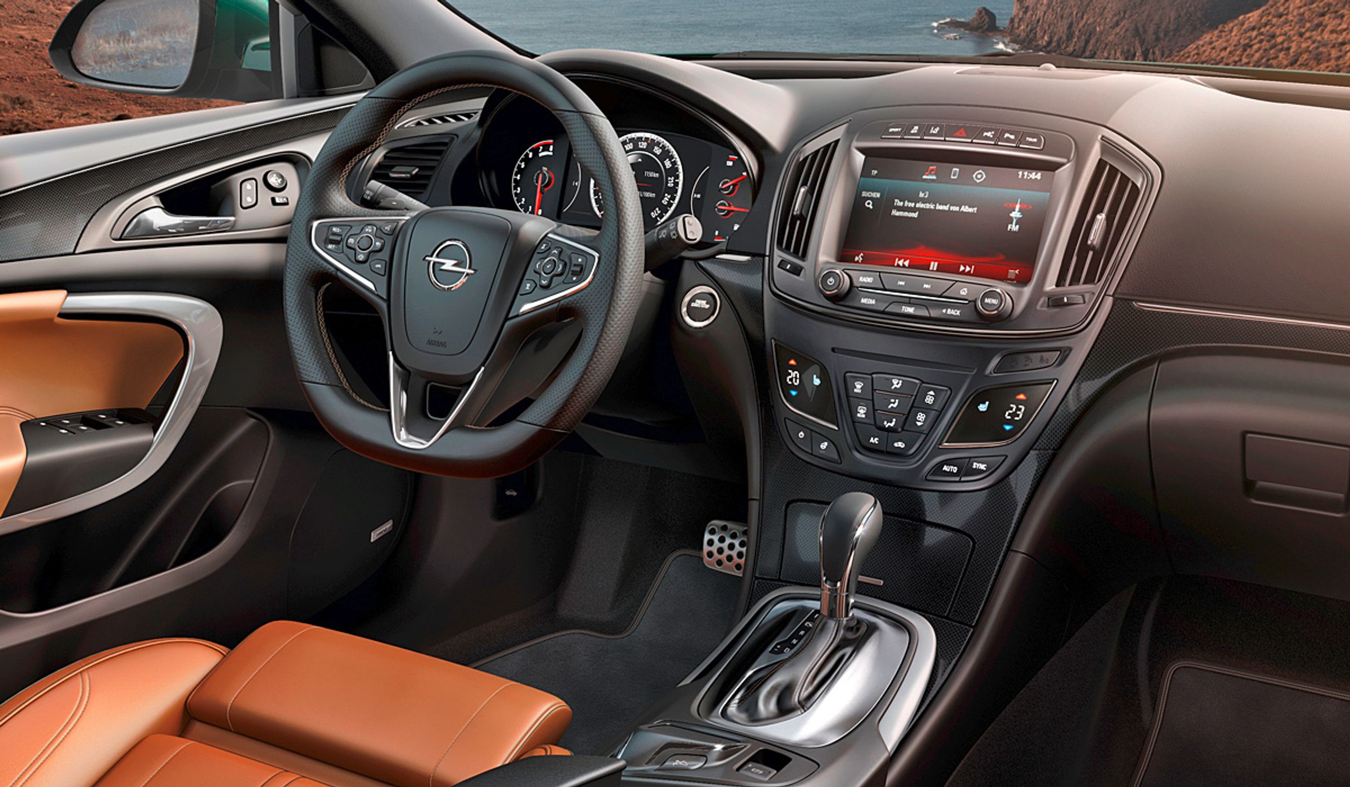 Fornyelsen er meget synlig i kabinen, hvor Insignia får nyt instrumentbord med et nyudviklet infotainmentsystem. Via en otte tommer berøringsfølsom skærm integreres flere smartphone- funktioner.