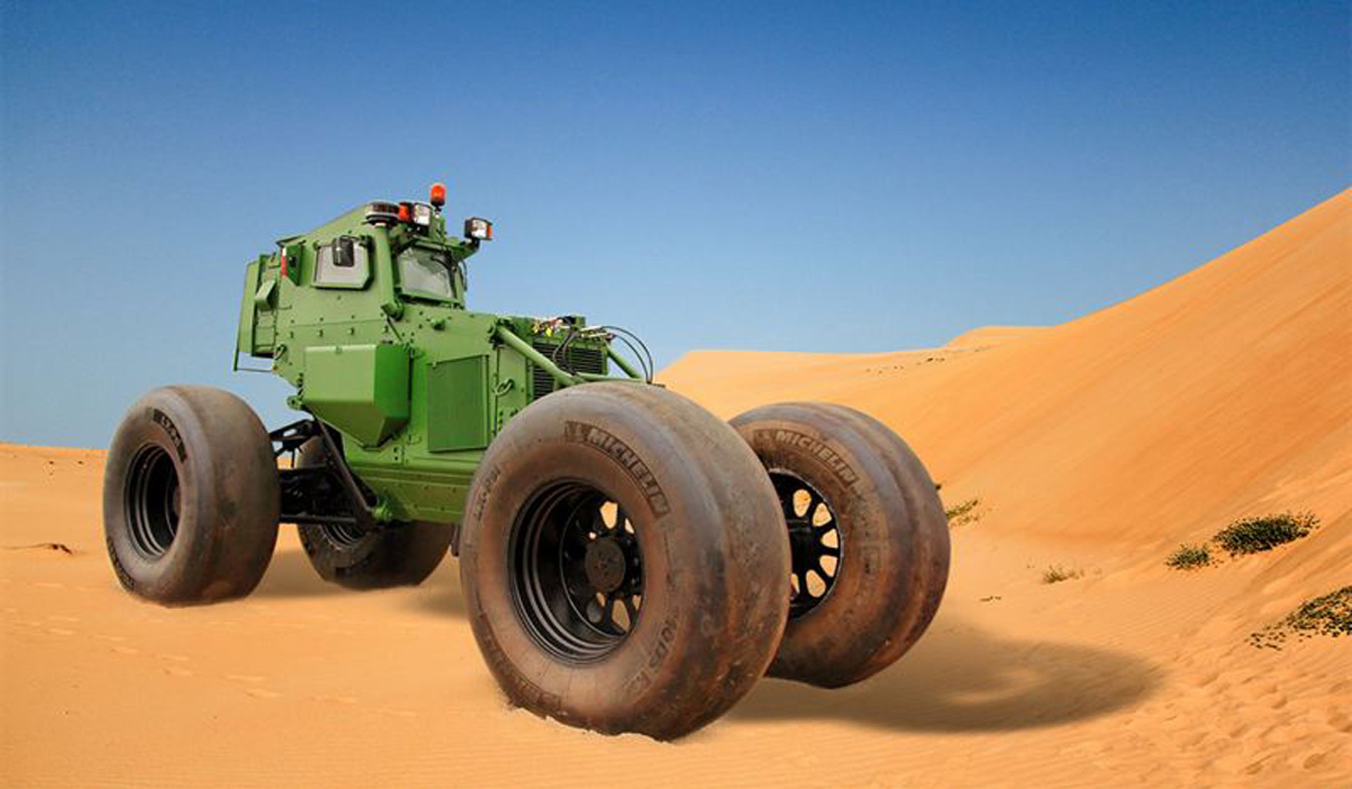 Et helt særligt Michelin-dæk gør det muligt for et minerydningskøretøj at forcere et minefelt uden at udløse miner.