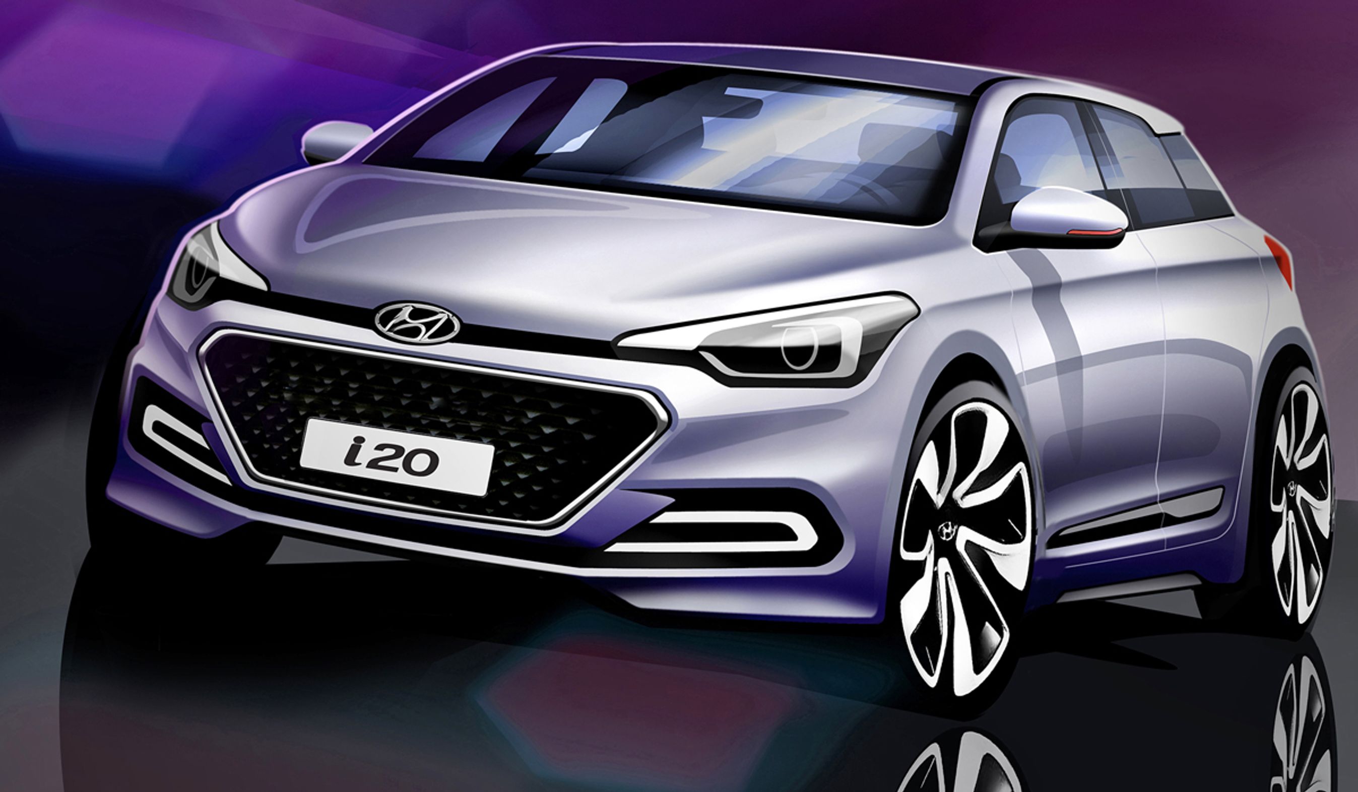 Hyundai i20 får et langt mere dynamisk udseende end dagens model, selv om tegningen her nok strammer designet en smule.