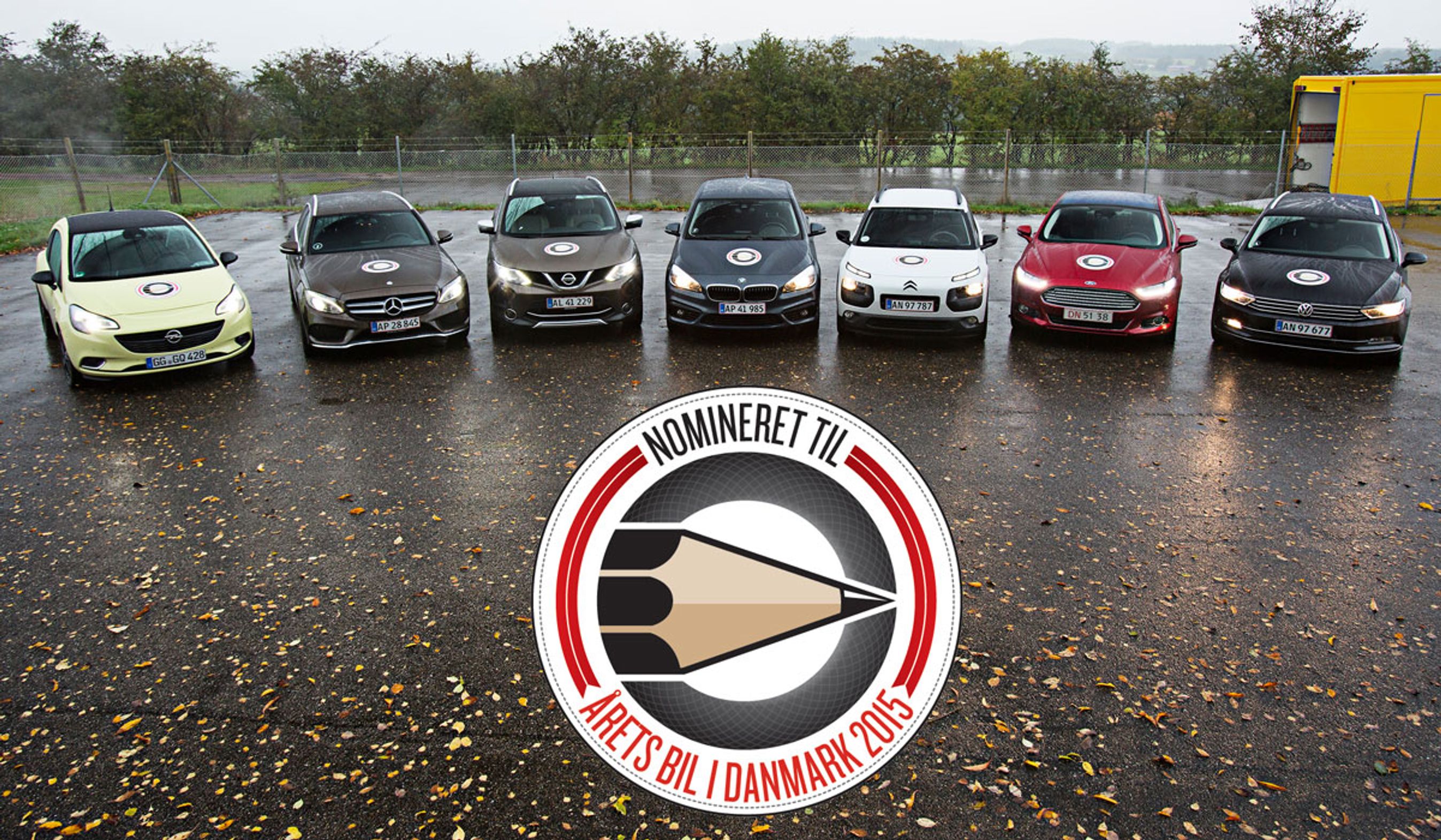 De syv biler er: BWM 2-serie Active Tourer, Citroën C4 Cactus, Ford Mondeo, Mercedes-Benz C-klasse, Nissan Qashqai, Opel Corsa og VW Passat. De kan alle kalde sig ”Nomineret til Årets Bil i Danmark 2015”.