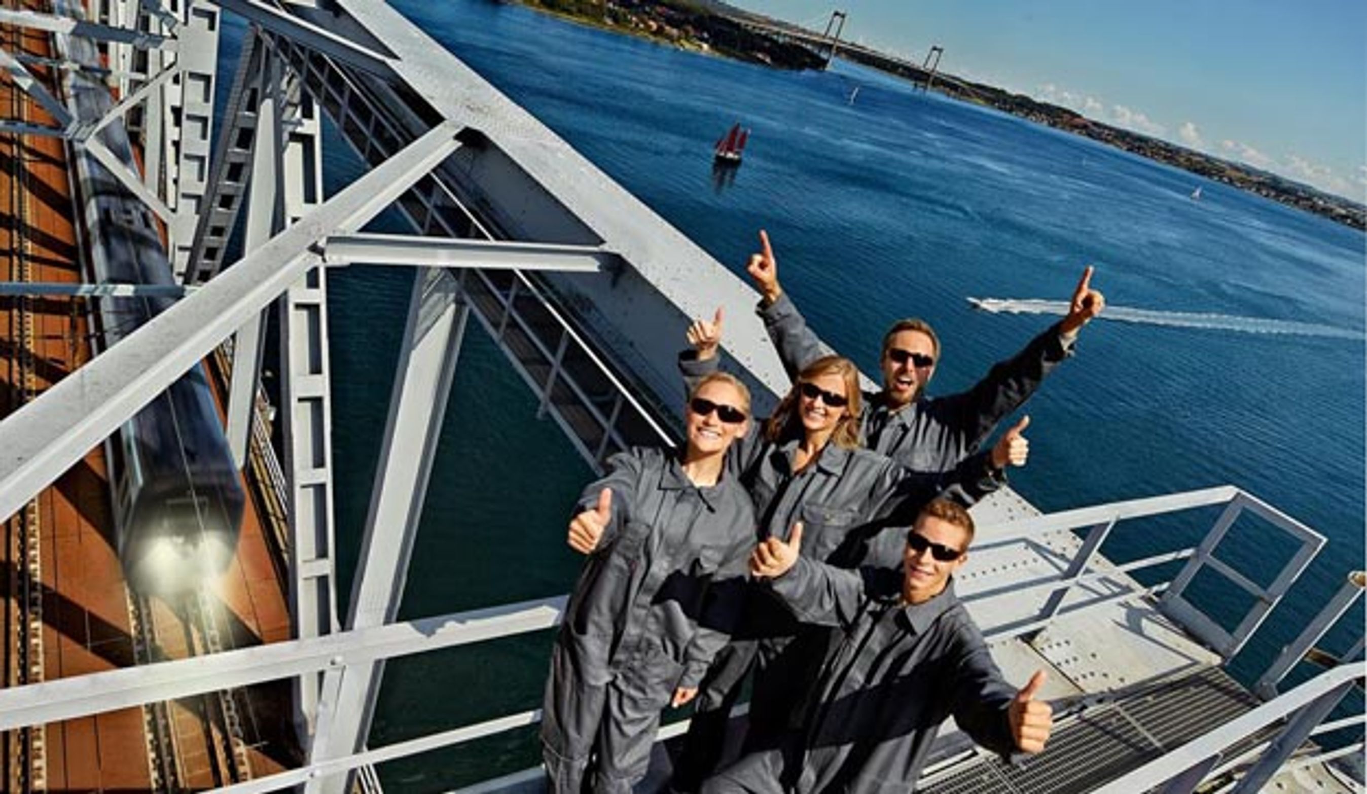 Oplev en spektakulær udsigt og mærk den svage rysten i broen, når toget kører over. Sådan lokker den nye attraktion, Bridgewalking, der åbner 14. maj næste år i Middelfart.