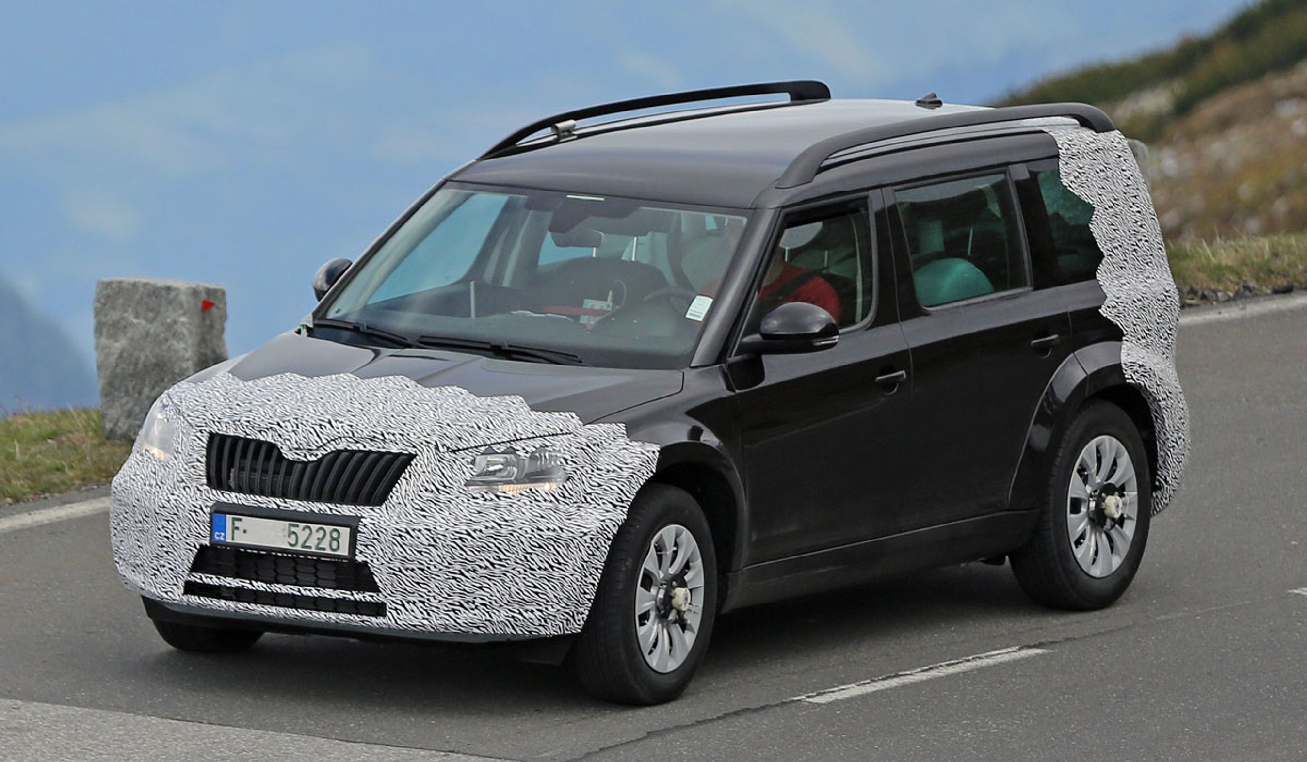 Selv om Yeti her ikke er kamufleret, får man ikke noget indtryk af den nye bils design, da det blot er en forlænget udgave af den nuværende model.