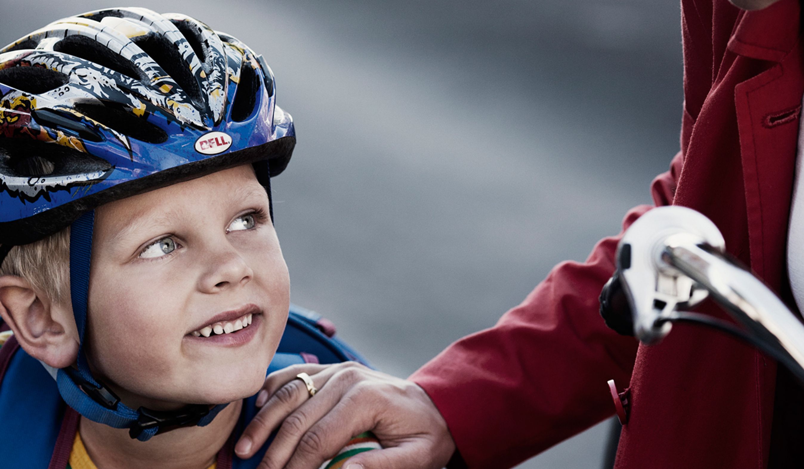 7. Hvis I cykler sammen, så husk hjelmen og lær dit barn at give tegn til stop og tegn for at dreje, så de andre trafikanter kender jeres intentioner.