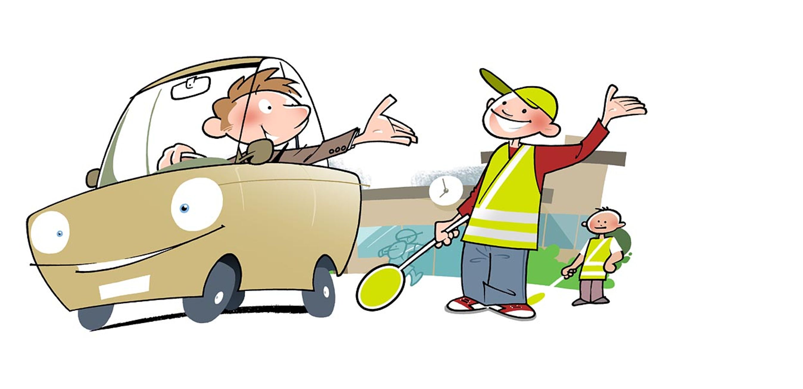 Hold farten nede og vær beredt på, at uforudsete ting kan ske i trafikken ved skolen. Illustrationer: Peter Heydenreich