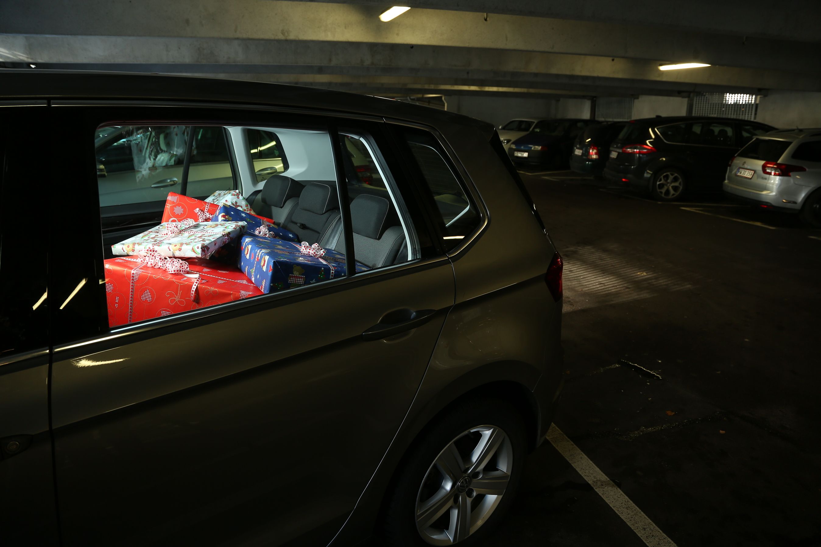 Det er ingen god idé at efterlade julegaverne i bilen, for de er ikke sikre – heller ikke, hvis man parkerer i et parkeringshus.