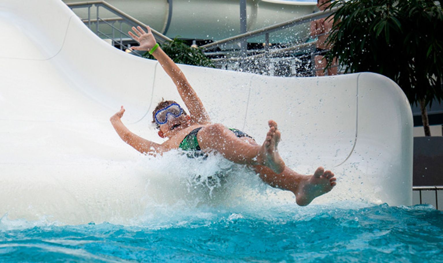 Gør jer klar til timevis af sjov og vandplaskeri i stort badeland og få kriller i maven på vej ned af vandrutsjebanen.