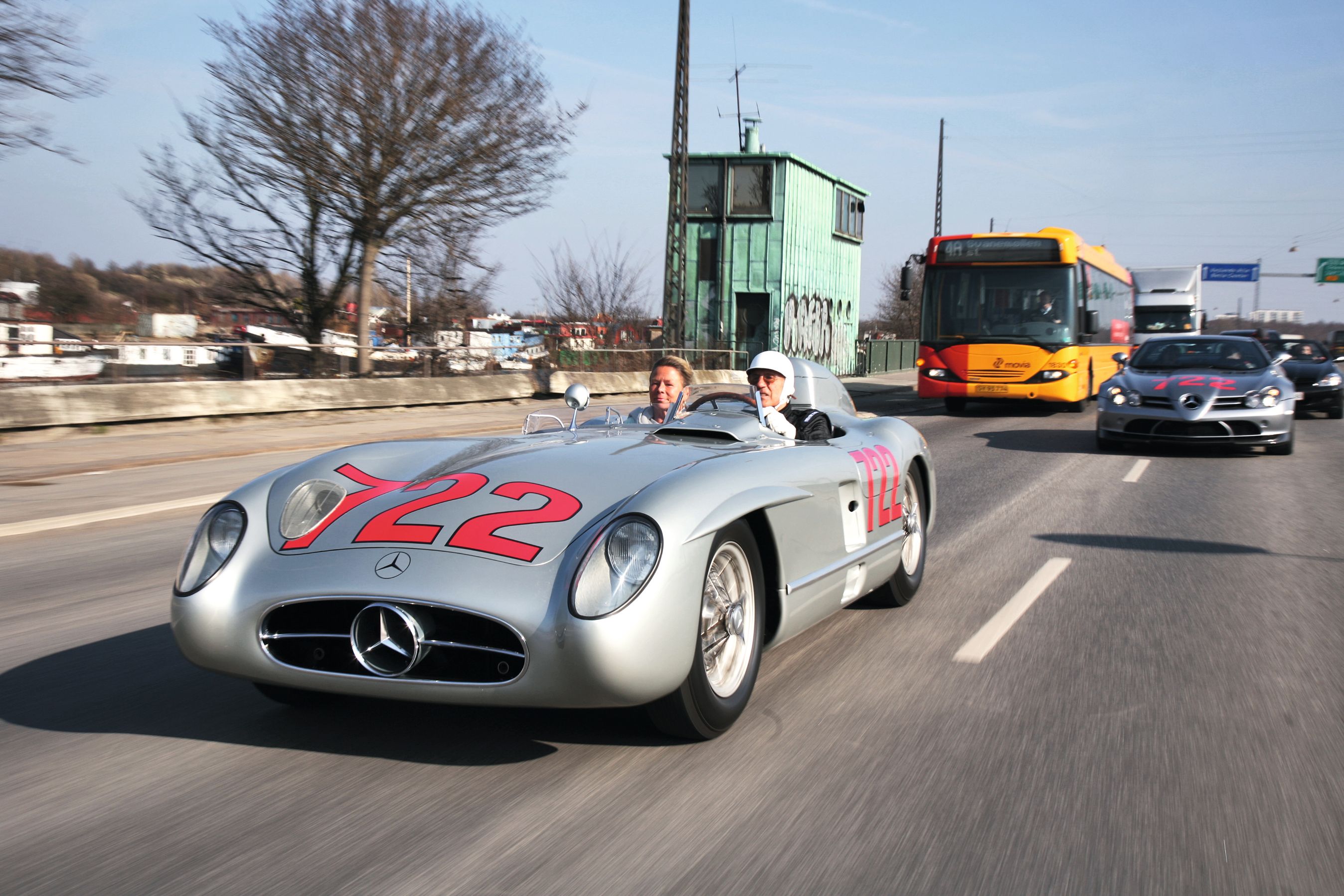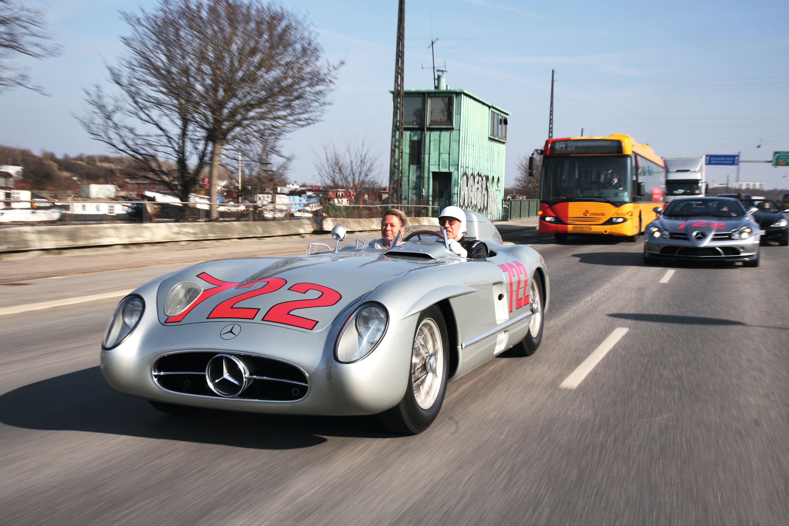 En af de kun ni overlevende Mercedes 300 SLR-racere fra 1955 er altid et sjældent syn – og nærmest unikt i Københavns gader med selveste Stirling Moss ved roret. Historien bag kan du finde i MotorClassic nr. 5.