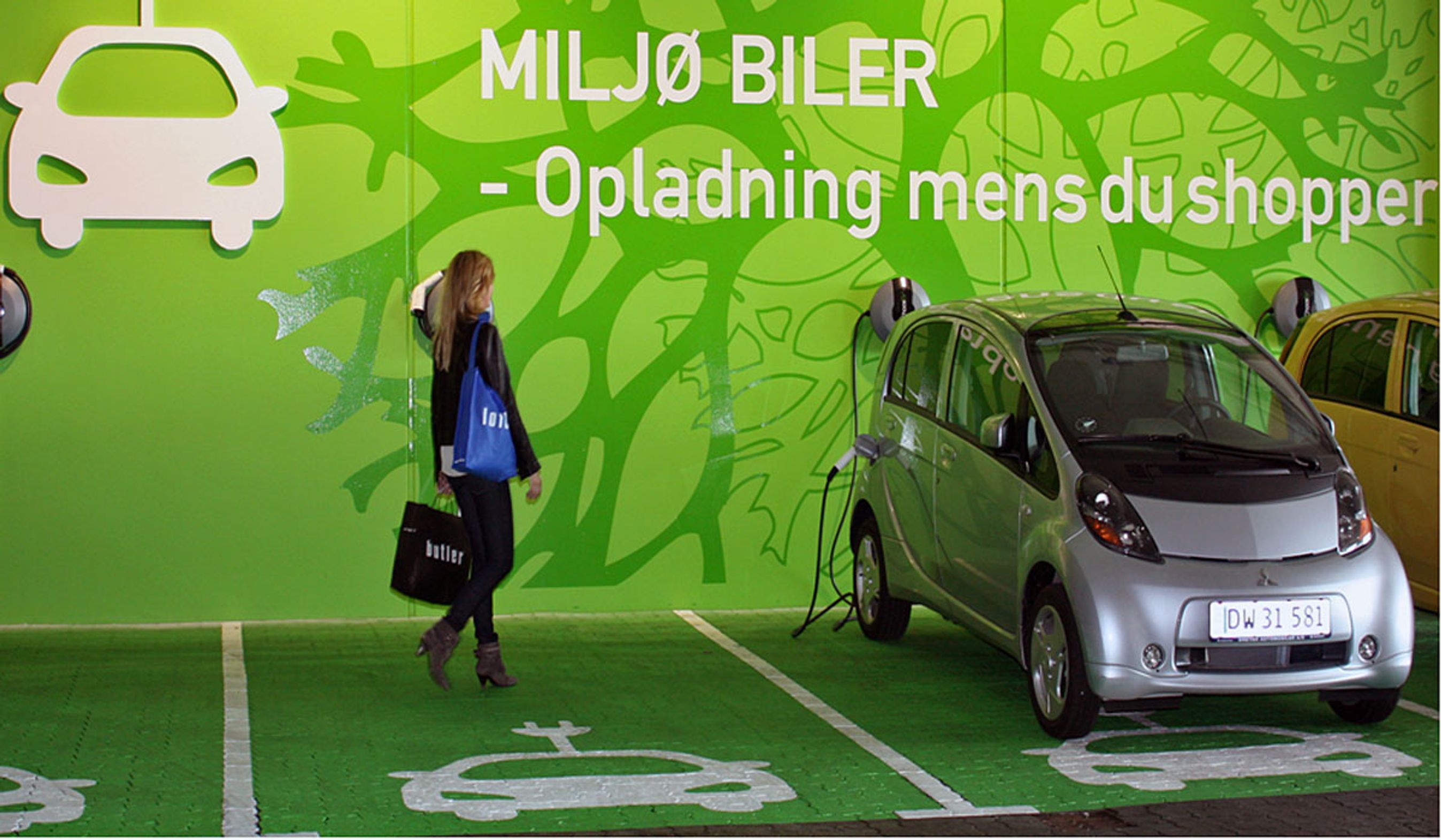 Det københavnske indkøbscenter Fisketorvet har oprettet særlige parkeringsbåse til elbiler med tilhørende ladestander.