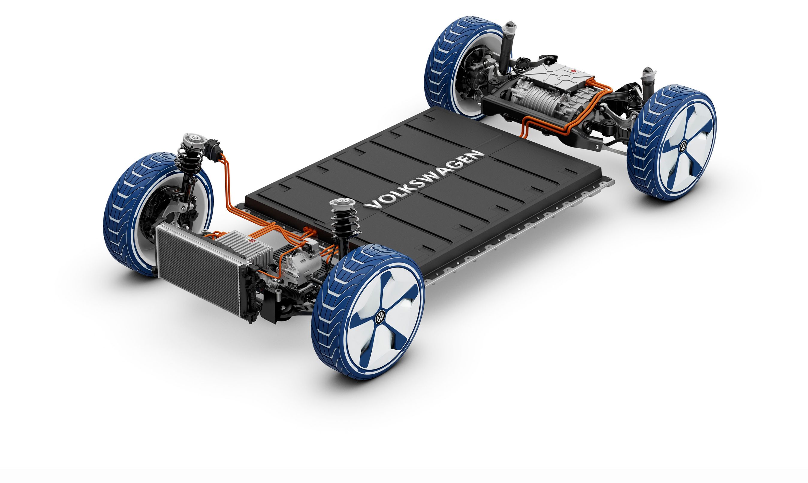 MEB-platformen til VWs kommende elbiler har stor akselafstand og batteriet under gulvet. Hovedmotoren er bygget sammen med bagakslen.