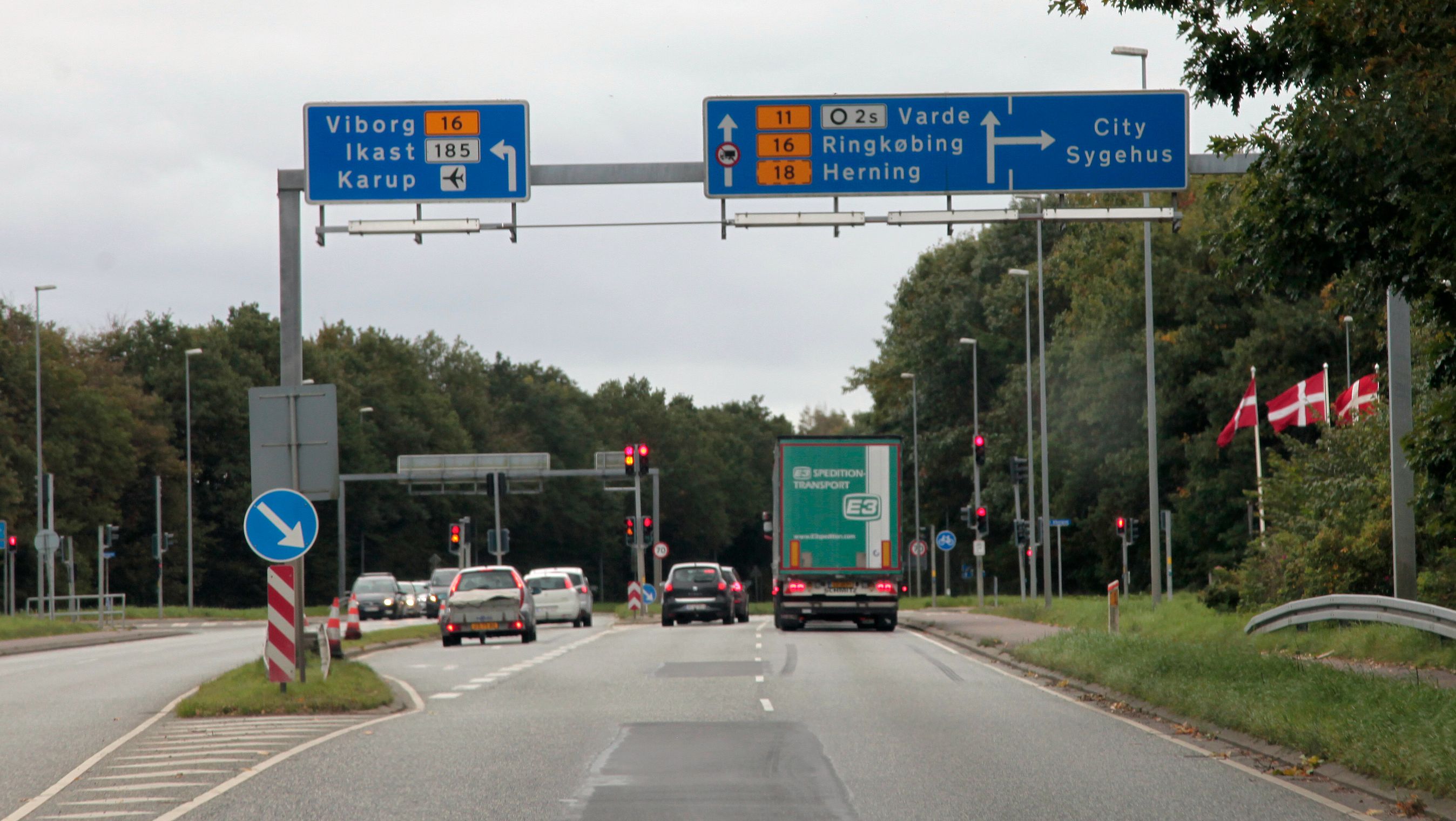 Èt sted ligger den faktiske trafik langt under forventningerne: Messemotorvejen vest om Herning. Her er det nye regionshospital i Gødstrup endnu ikke er åbnet.