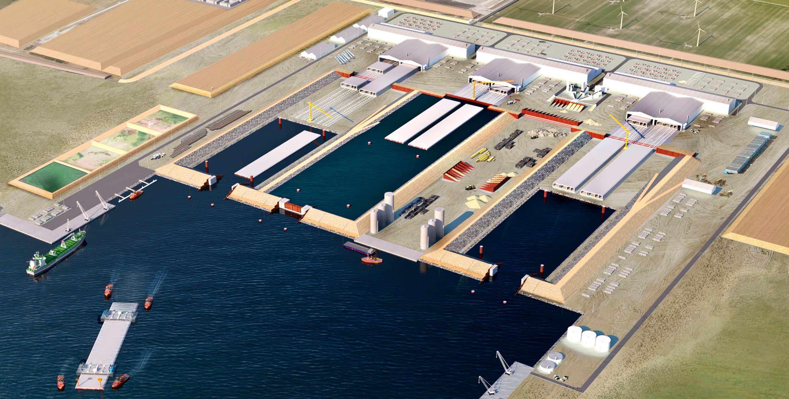 Arbejdshavn og tunnelelement-fabrik ved Rødyhavn er første skridt mod Femern-tunnelen.