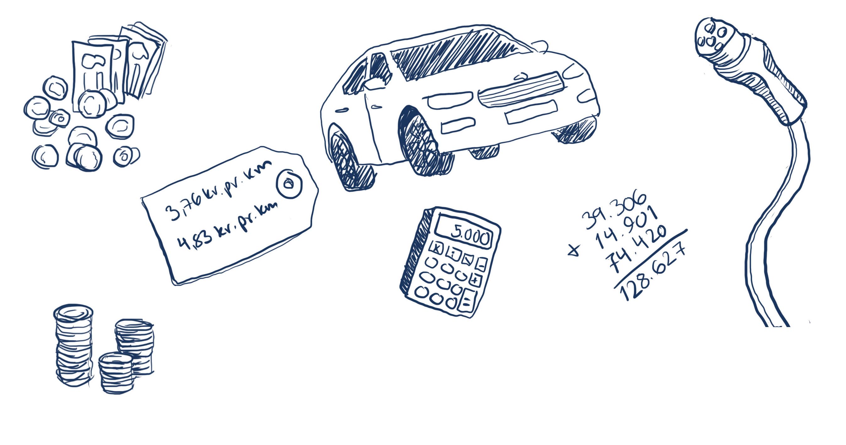 Samlet betyder det, at køber man en ny benzinbil til 200.000 kr. og beholder den i fem år (100.000 km), vil den koste 3,57 kr. pr. km.