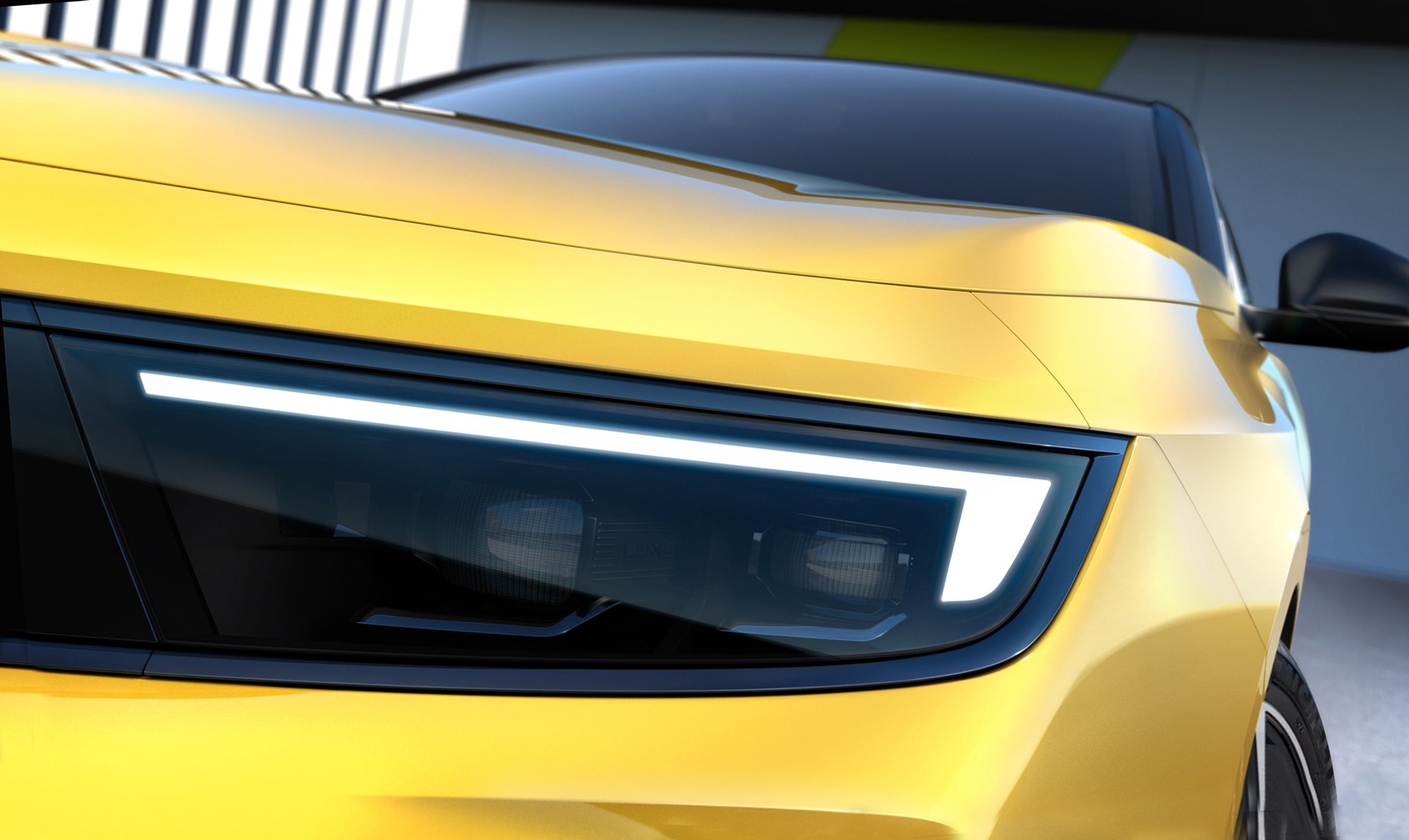 Opel fortæller derimod direkte, at Astra bl.a. får en ny udgave af mærkets adaptive matrix-forlygter og viser et udsnit af førerpladsen, hvor man kan se, at midterskærmen og skærmen i instrumenthuset visuelt går ud i ét.
