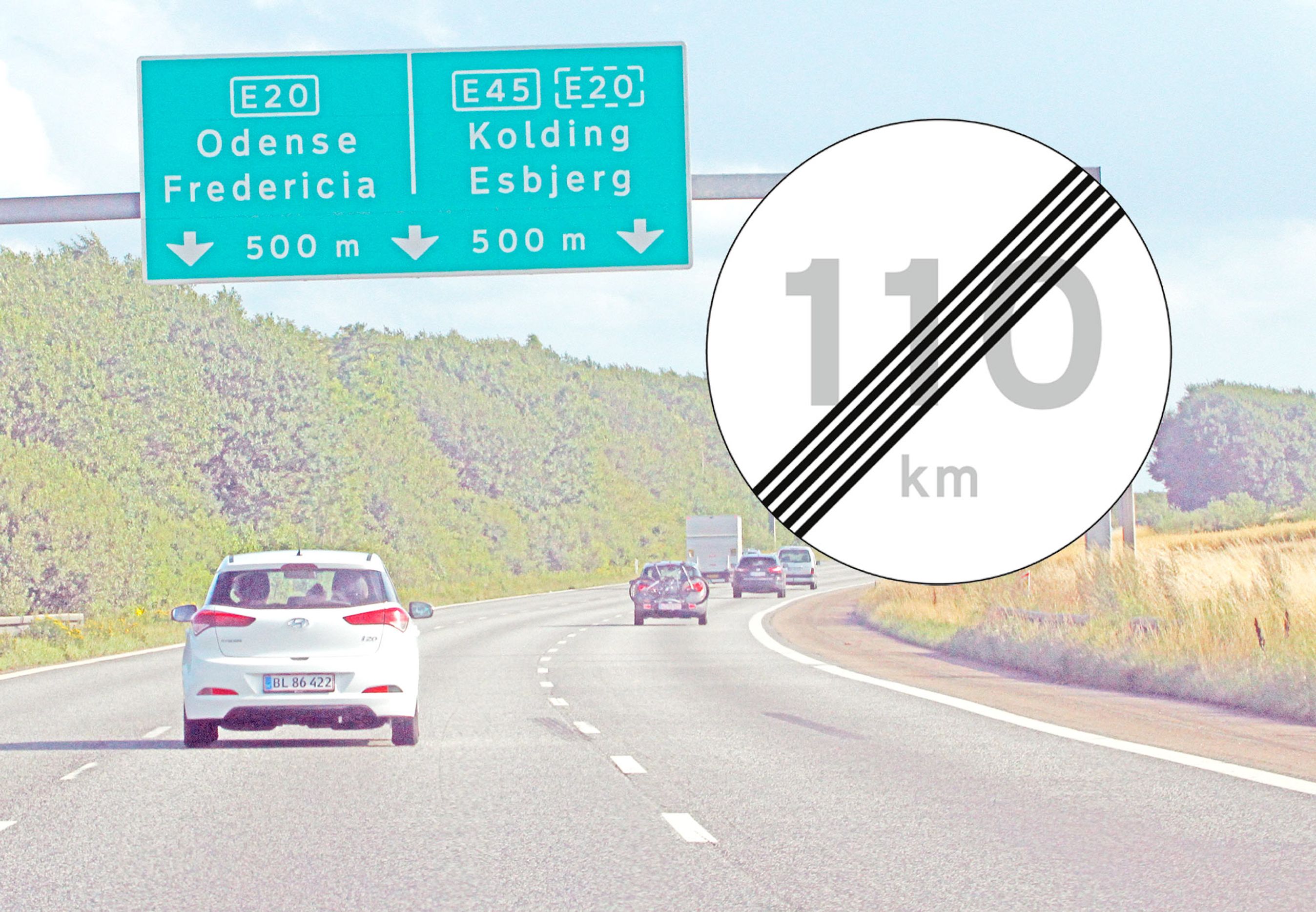 Tidligere i år er fartgrænsen hævet på den nordlige del af Hirtshalsmotorvejen, på Djurslandmotorvejen og en lang strækning af Sydmotorvejen mellem Farøbroerne og Sakskøbing. Også på en del af Holbækmotorvejen er de skiltede fartgrænser forsvundet.