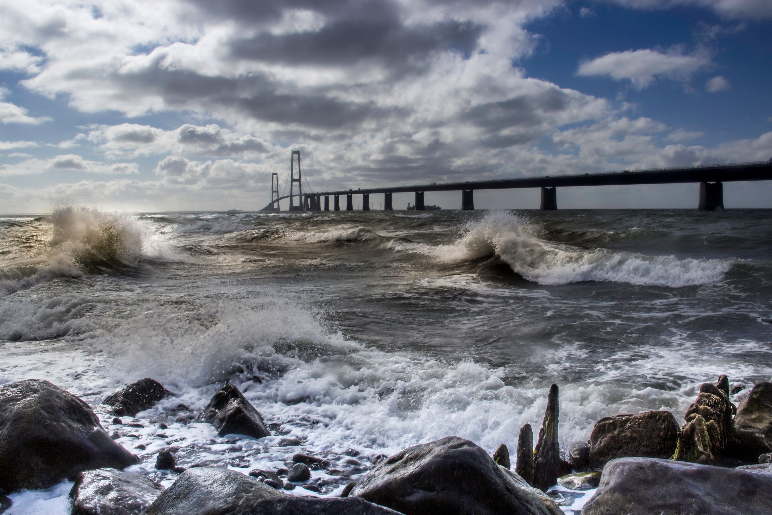 Først når det blæser 25 m/s (storm), indstilles al trafik i dag på broen.