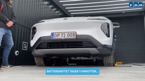 Demonstrationen af batteriskiftet krævede lidt tilløb, da teknikken drillede, men da processen startede, gik selve skiftet hurtigt. Som bilist skal du parkere i et område lige ud for selve stationen. Derefter overtager bilen selv styringen og parkerer automatisk i skiftestationen. Efter fem minutter er man klar til at køre videre.