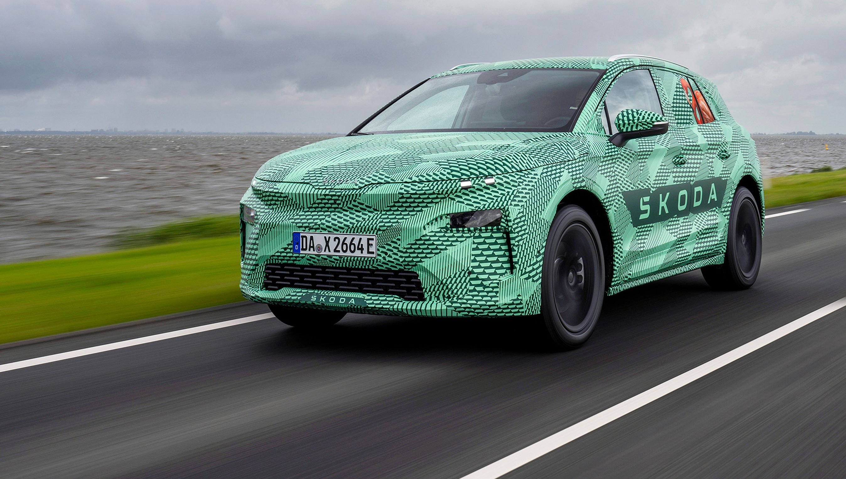 Motors første tur i Skoda Elroq foregik i kamuflerede for-serie-modeller. Skoda ønsker først at vise bilens egentlige design 1. oktober. Derfor måtte vi heller ikke fotografere kabinen.
