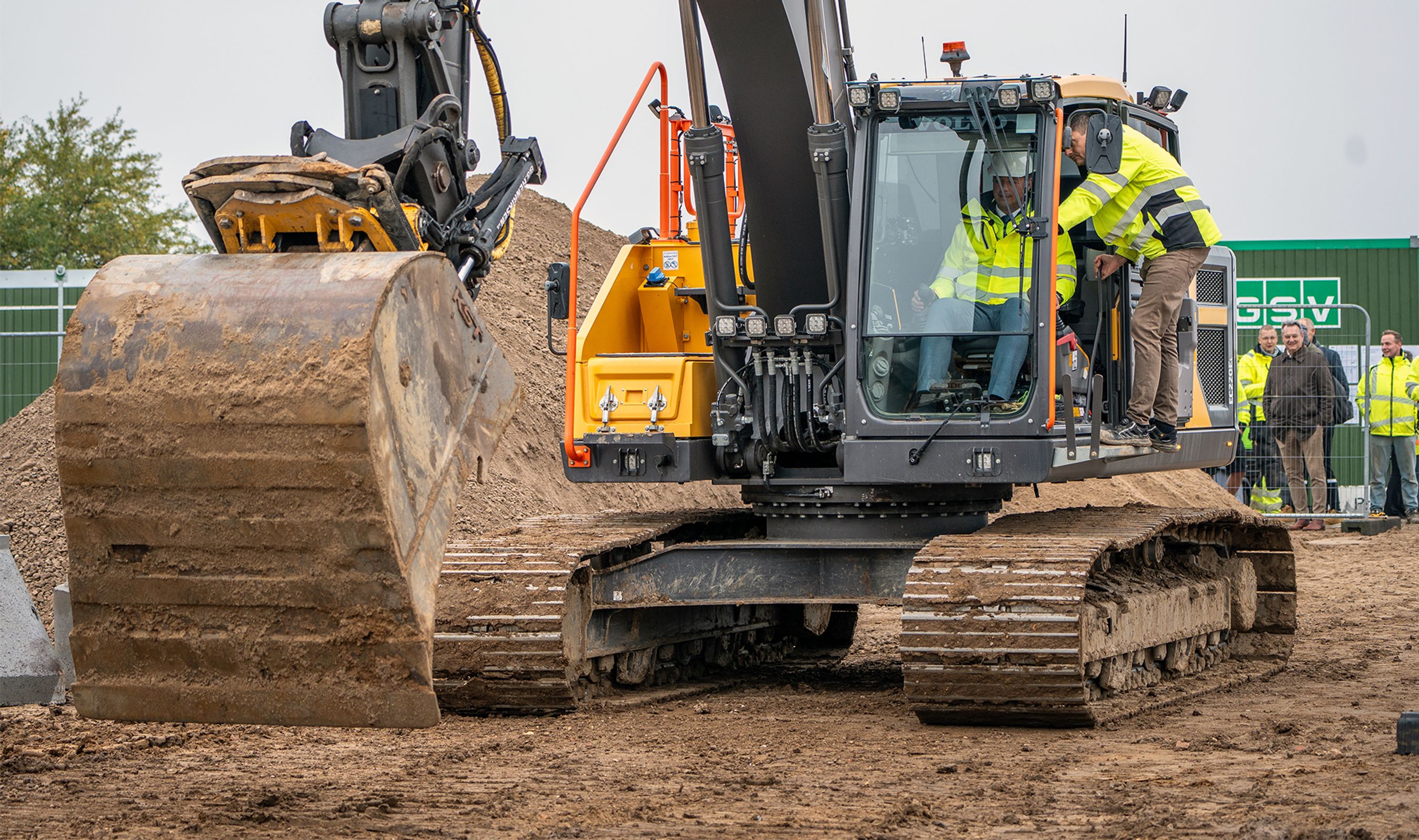 Med en ordentlig skovlfuld jord fra en gravemaskine har transportminister Thomas Danielsen symbolsk sat gang i byggeriet af Kalundborgmotorvejens tredje og sidste etape.