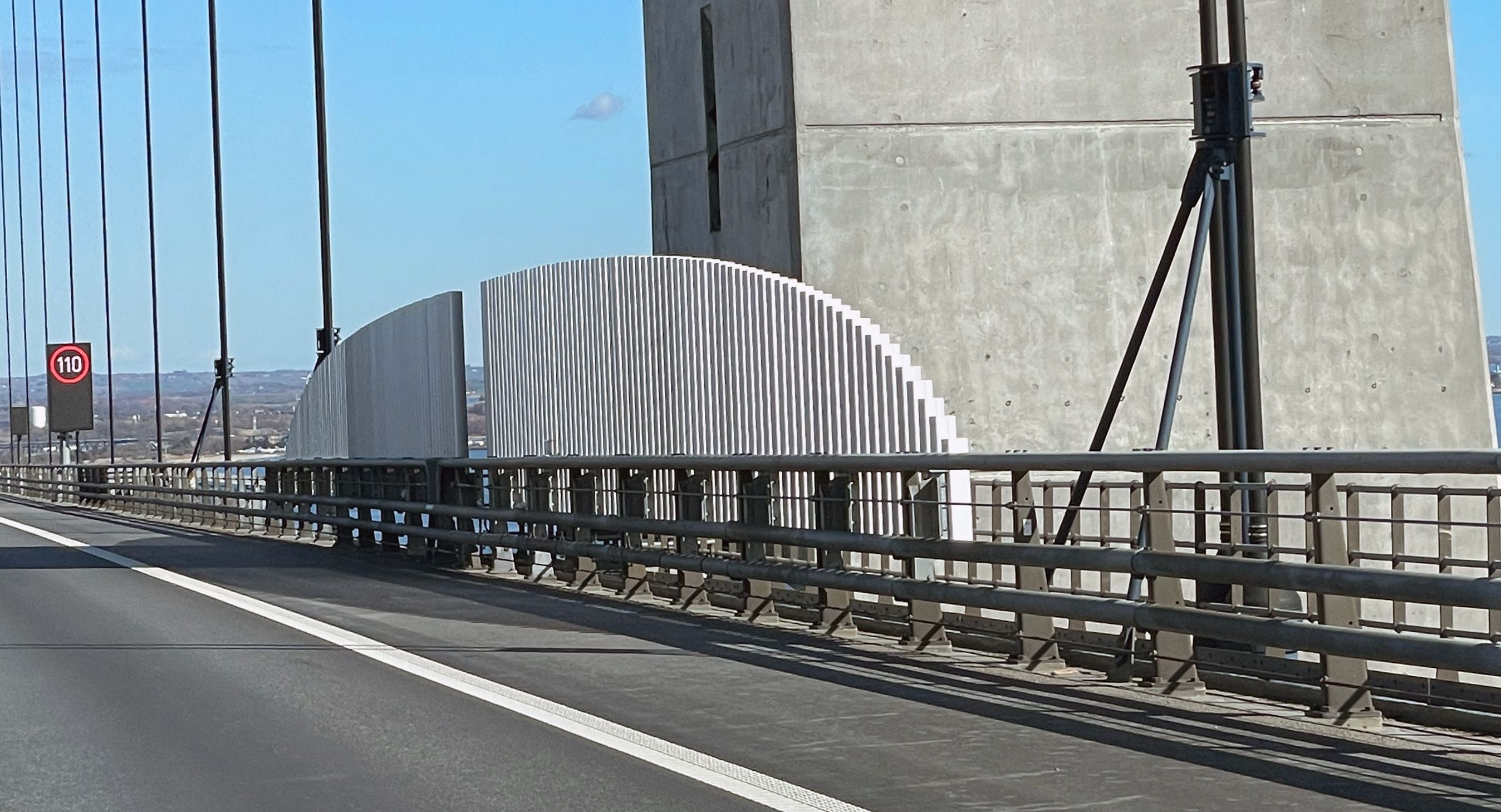 Fartgrænsen på broen er normalt 110 km/t, men kan med dynamiske skilte sættes længere ned.