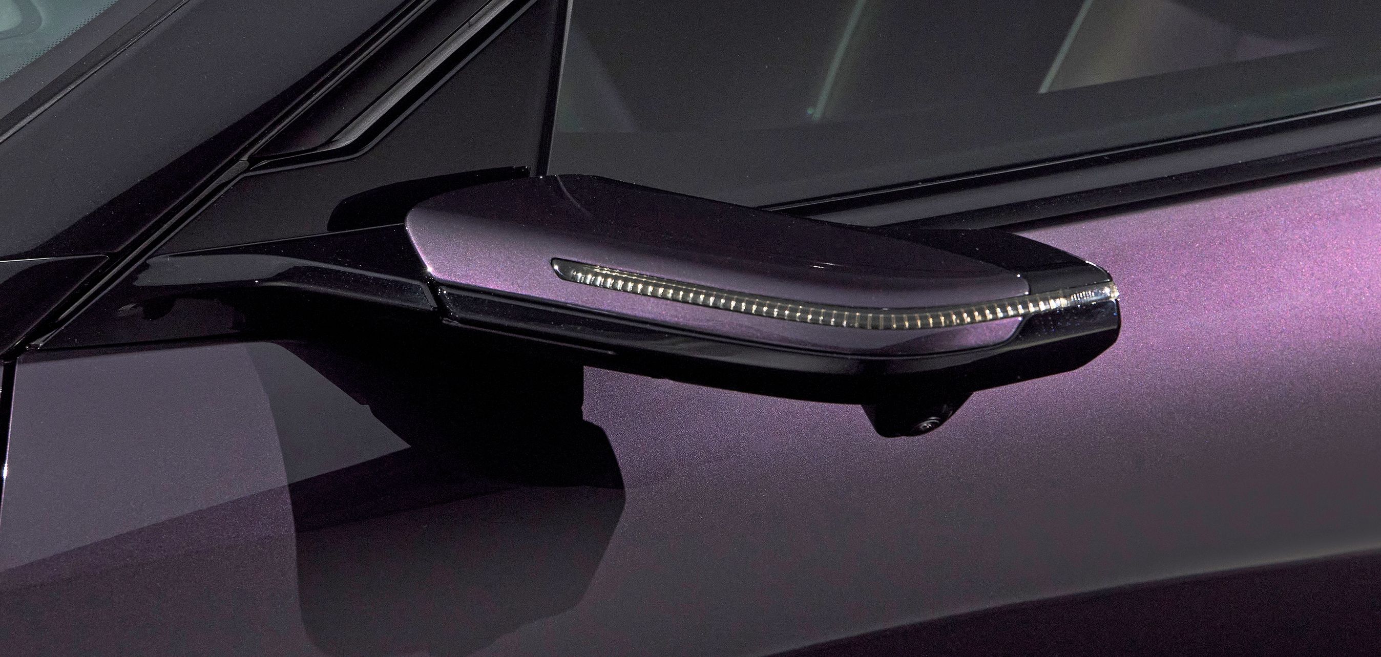 For første gang kan man nu få en Mazda med digitale sidespejle og bakspejl. Det bliver standard på topmodellen Takumi Plus, som også udsætter de ombordværende for det violette kabine-indtræk.