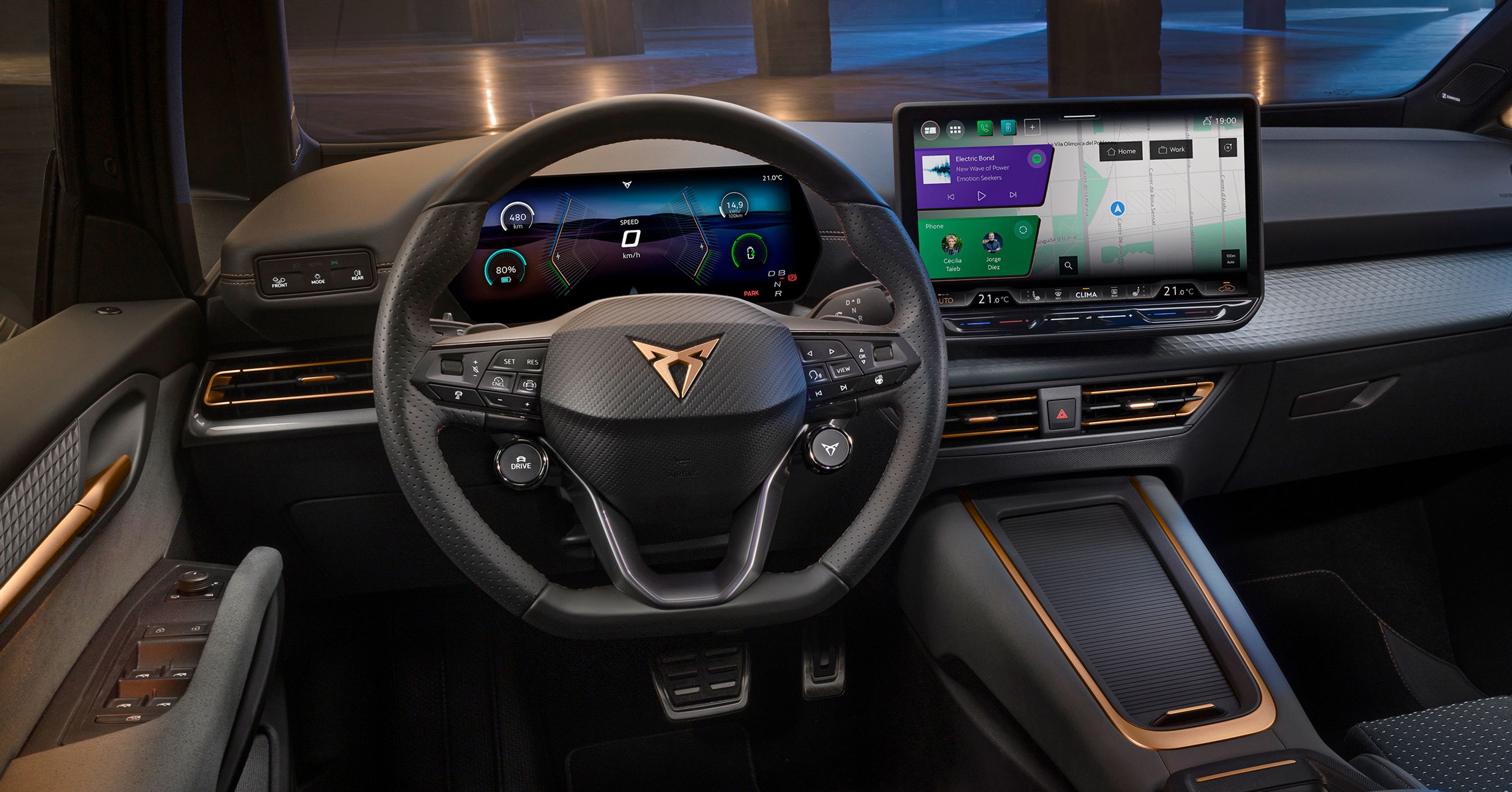Kabinen i Cupra Born er opgraderet med bedre materialer. Her er det topudgaven VZ.