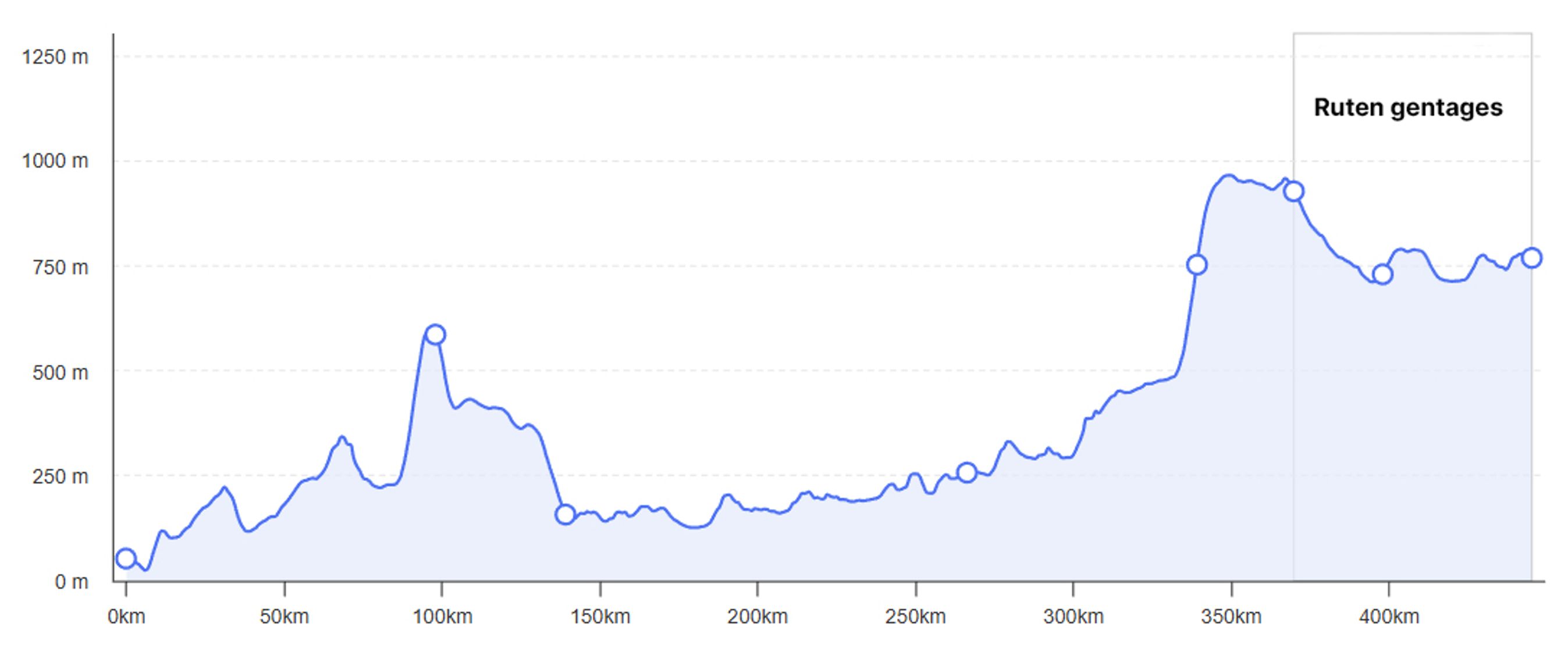 Ruten er kuperet og byder også på en tur op i cirka 1.000 meter over havets overflade. Det højeste punkt i Danmark er til sammenligning cirka 170 meter over havets overflade. Ruten er tidligere blevet kritiseret for at have en bakke til sidst, hvor det muligt regenerere for meget, når det går stejlt nedad. Derfor er slutningen af ruten et mere fladt stykke i år. Hvis bilerne ikke er løbet tør for strøm, når de har kørt hele ruten, skal de køre mellem de sidste punkter, hvor det ikke går særlig meget op eller ned. Det er efter 350 kilometer.