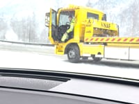 Otte biler er foreløbig stoppet på en strækning på 60 kilometer. Det giver travlhed for de bjærgningsvogne, der skal hente de stoppede biler. Det giver også lidt ventetid for chaufførerne. Temperaturen ligger lige nu omkring minus 22 grader.