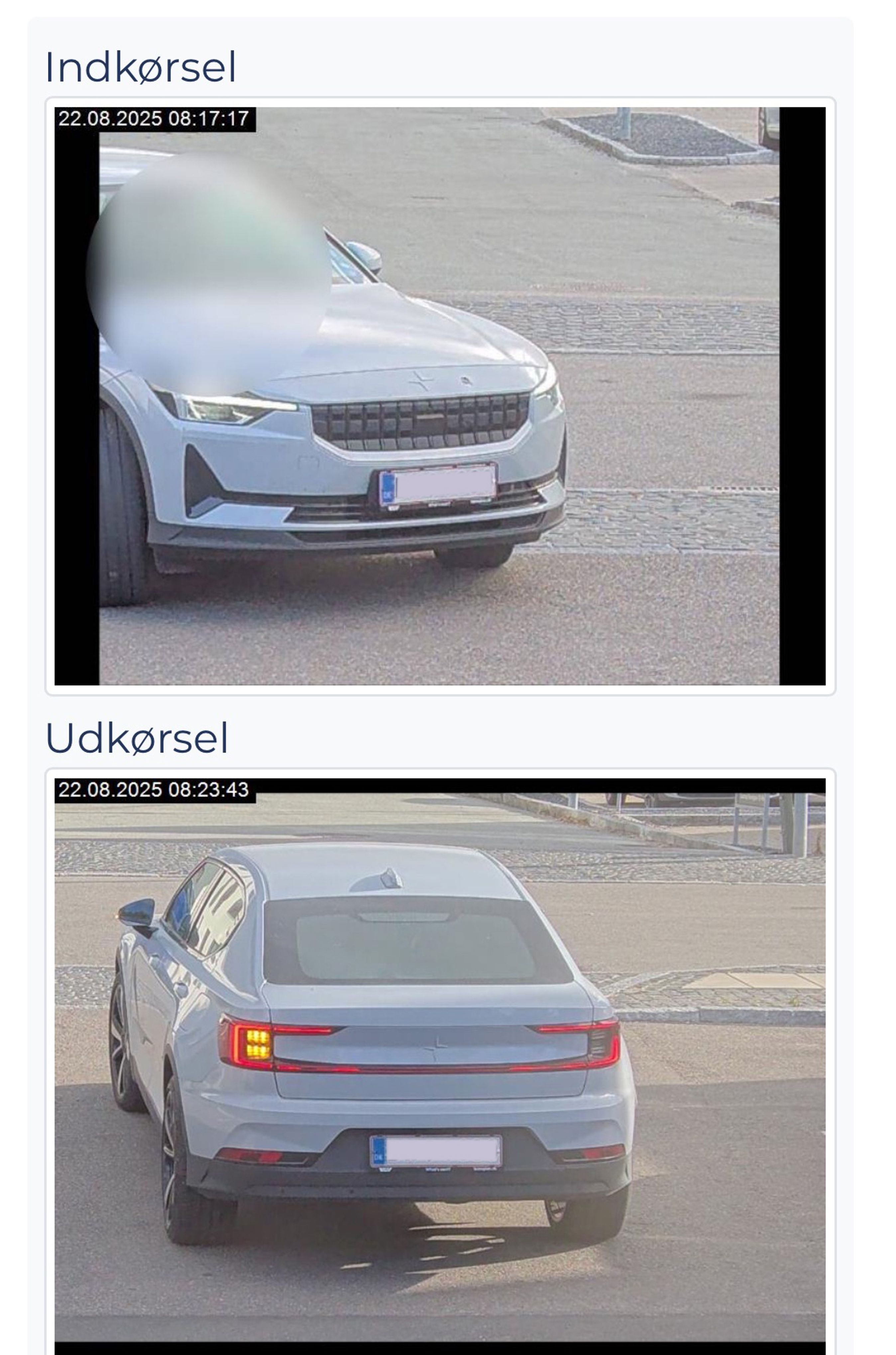 6 minutter og 26 sekunder gik der, fra William kørte ind på p-pladsen, til han kørte ud igen. (privatfoto)