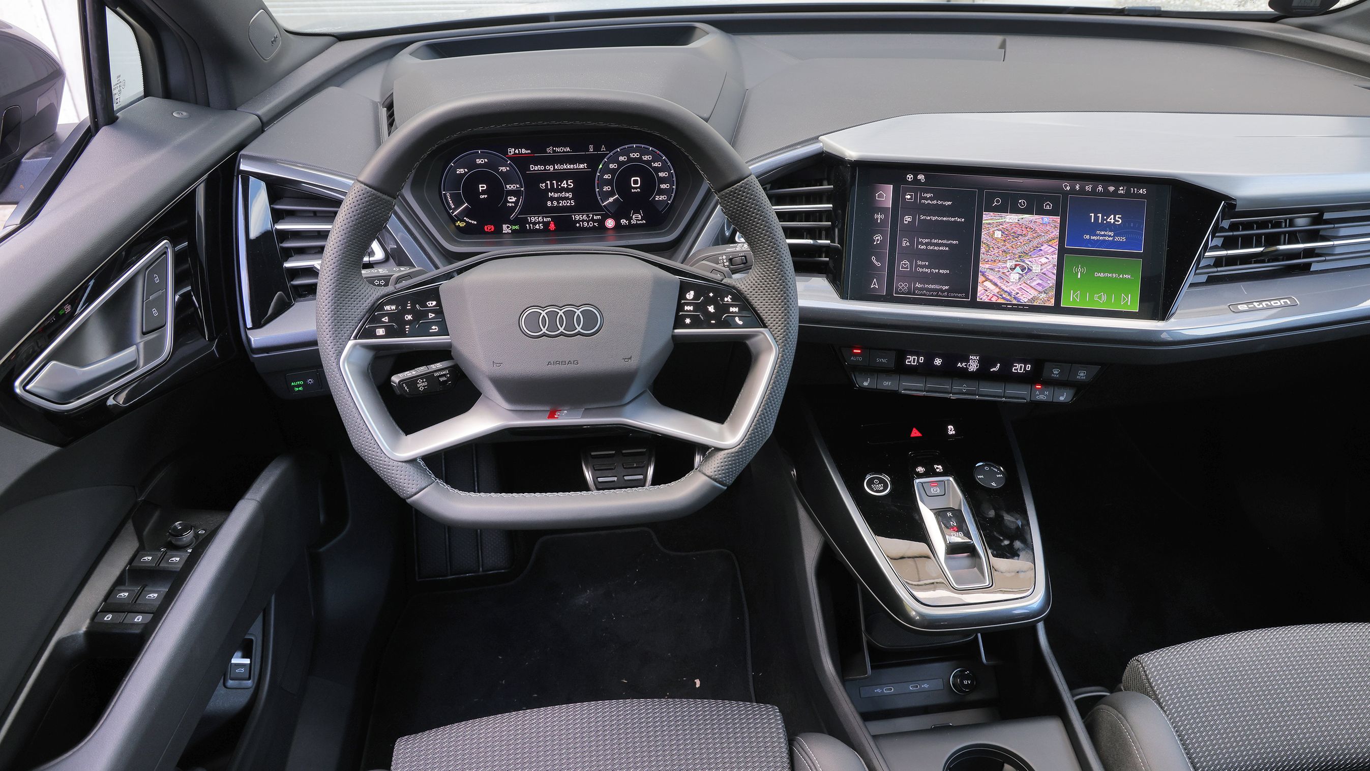 Man får masser af udstyr for pengene i Audi Q4 e-tron. Den ser nu mere sportslig ud og føles mere sportslig at køre, men ladetid og kabine er ikke fulgt med udviklingen.