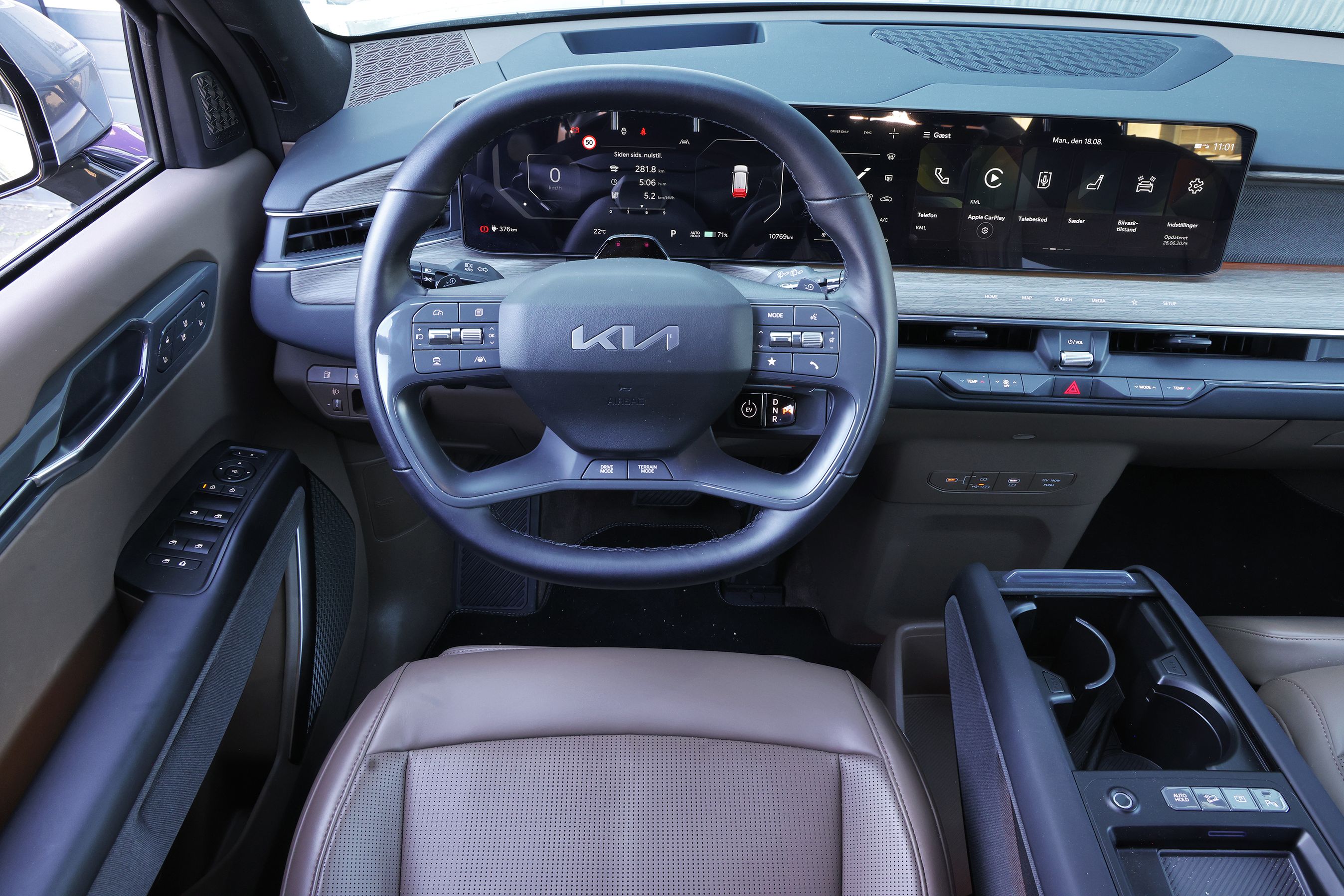 Den udgave vi her har testet, er den firehjulstrukne med det store batteri på næsten 100 kWh. Den kører ifølge fabrikken 541 km på en opladning, hvilket ikke er voldsomt langt i forhold til batteriets størrelse. Årsagen er, at EV9 er stor og tung, og så kan den ikke specielt aerodynamisk.