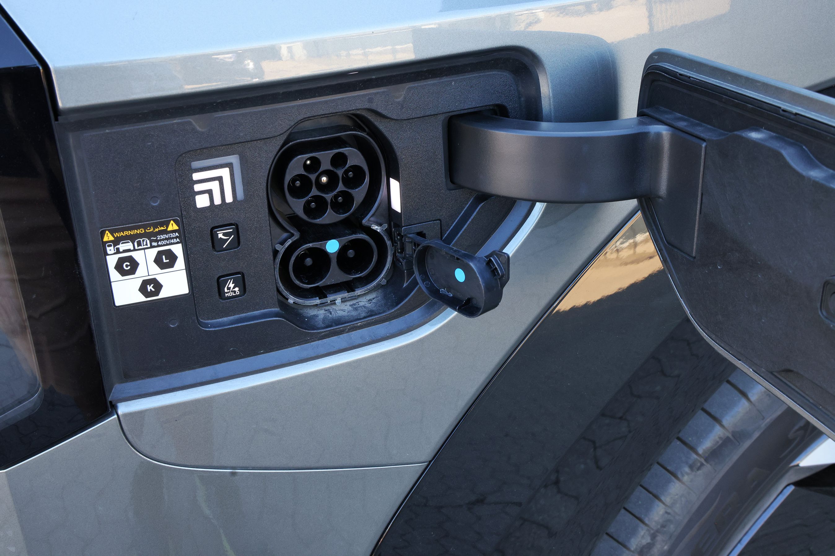Hjemme eller ved en bylader kan bilen oplades med 11 kW, og så tager det lidt over ni timer at lade bilen helt op. Det er lang tid, men mest af alt et udtryk for, at batteriet er så stort, som det er.