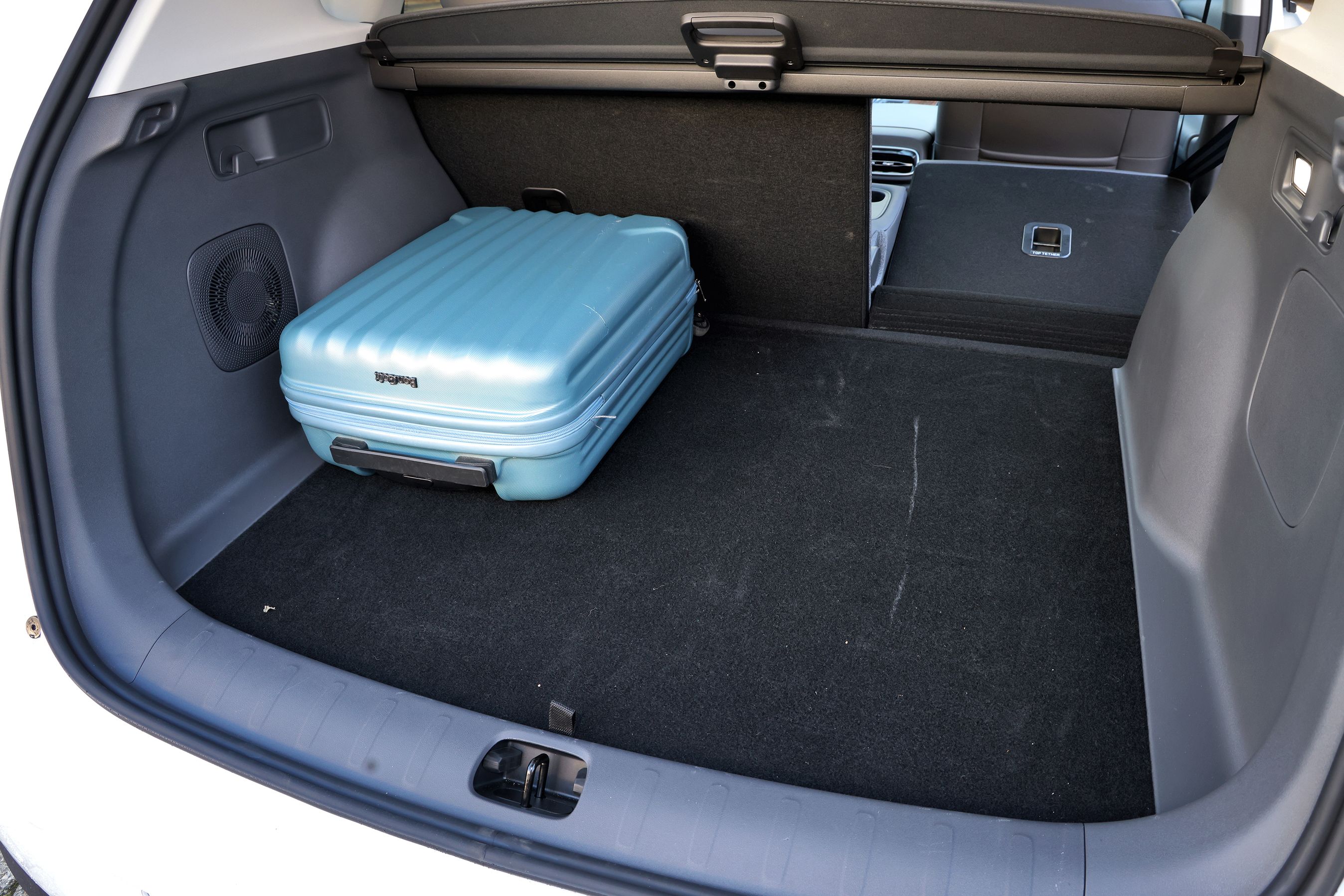 Bagagerummet er med sine 525 liter ret stort og vil givetvis kunne tilfredsstille de flestes behov. En lille frunk fortil gør det muligt at opbevare ladekablet der, så det ikke skal optage plads bagtil. Bilen må udstyres med anhængertræk, og den må trække op til 750 kg.