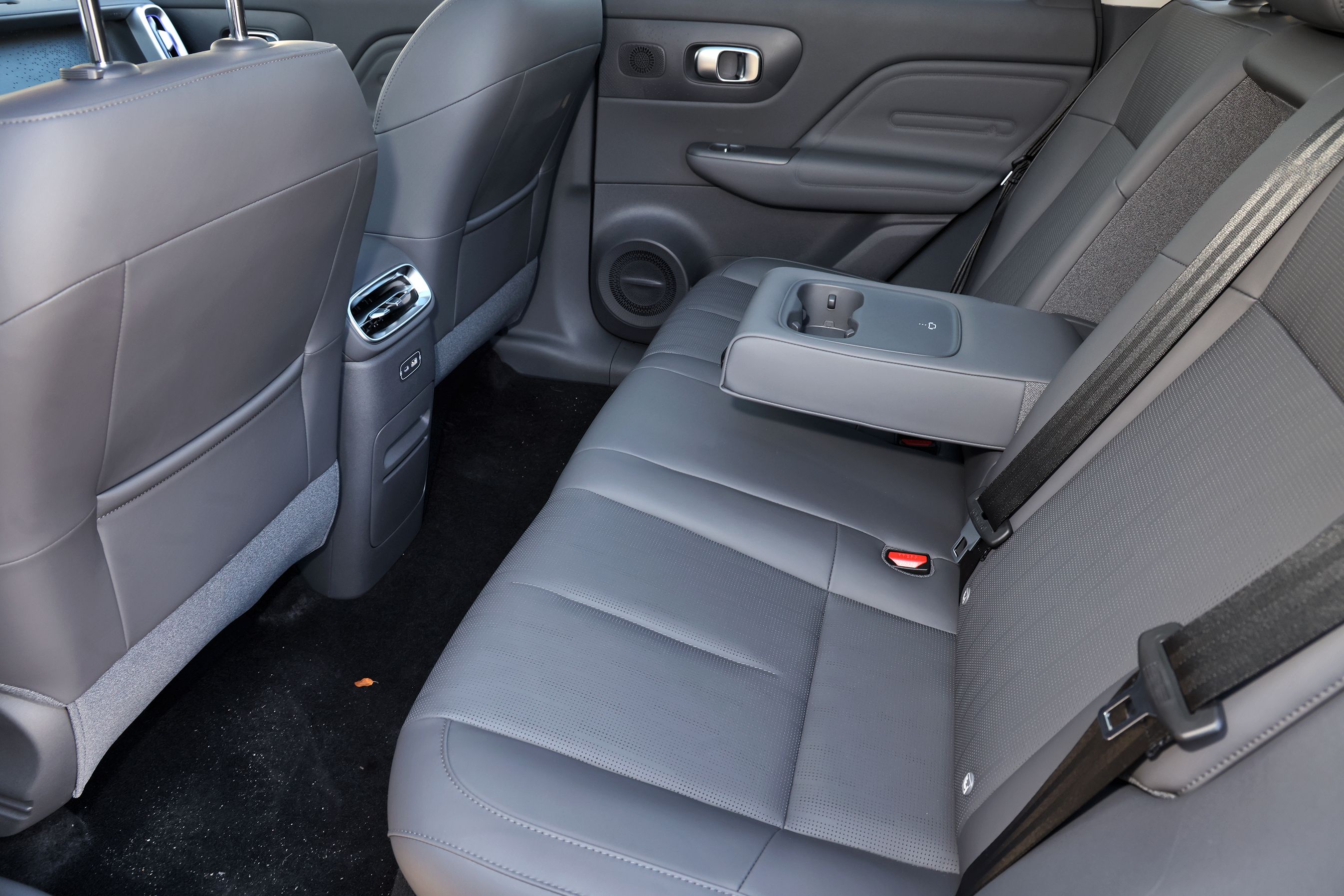 Der er rigtig god plads ved bagsædet, og der er et fladt gulv foran bagsædet. Der er desuden friskluftdyser og strømudtag til mobiltelefoner. Et midterarmlæn indeholder to kopholdere.