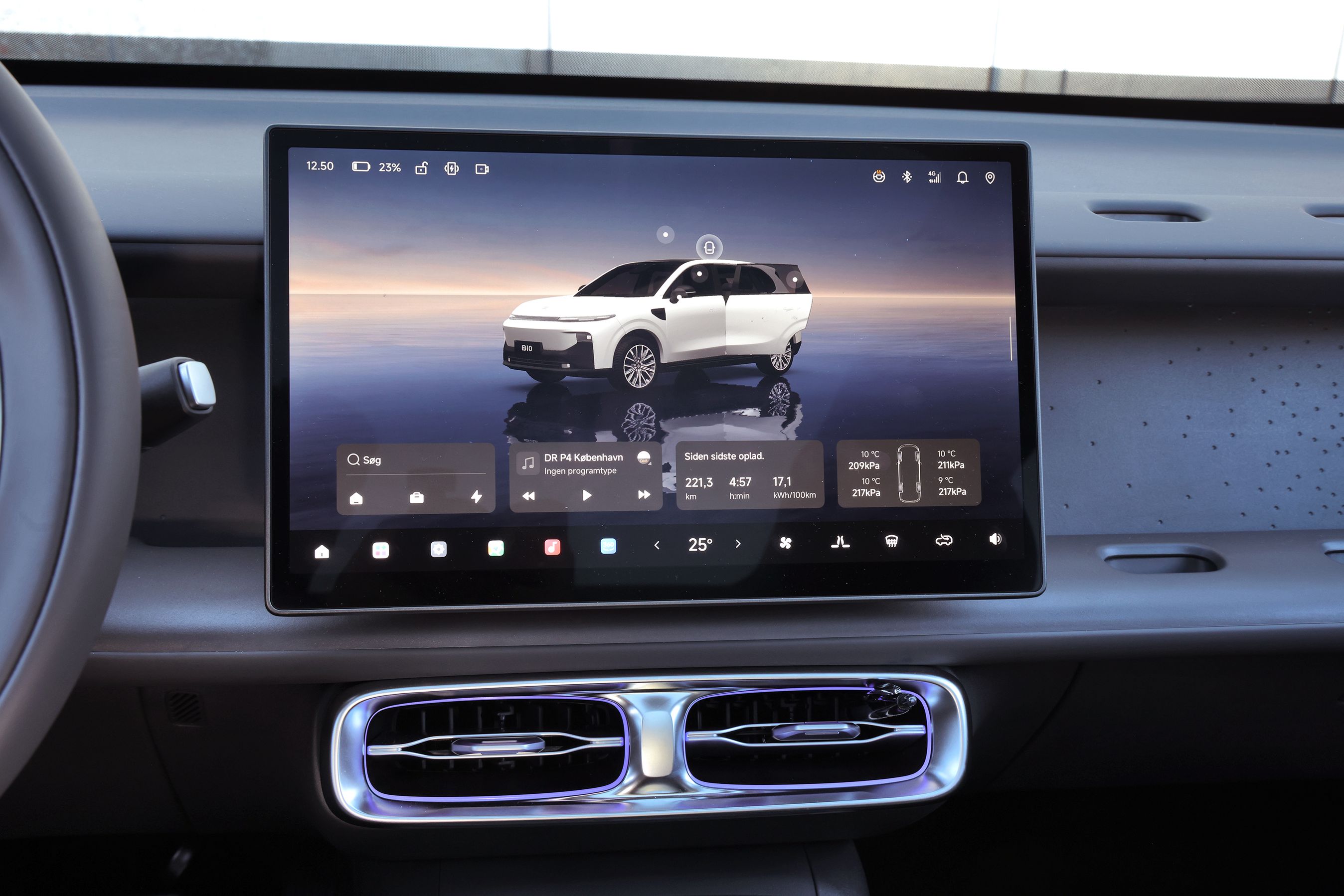 Der er danske menuer på skærmen, der på nogle områder er udmærket konfigureret. Men flere gange skal man ind i dybe menuer, før man har fundet det, man leder efter. Skærmen måler 14,6” og indeholder bl.a. et avanceret bak-kamera (360 grader).