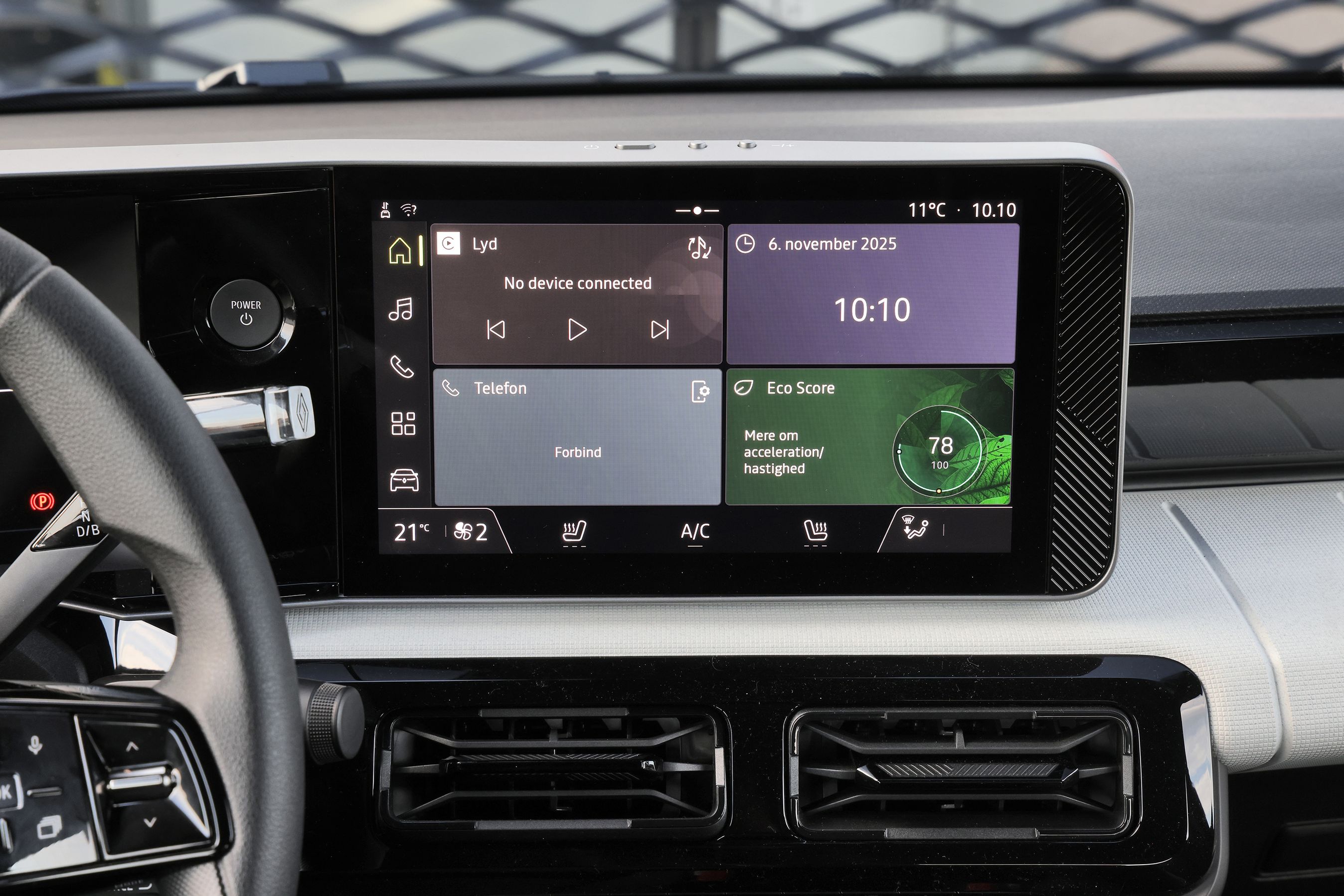Vi blev også glade for, at det er let at aktivere sædevarmen, og at klimaanlægget er let at betjene via separate knapper. Det gør det let at betjene bilen under kørslen.