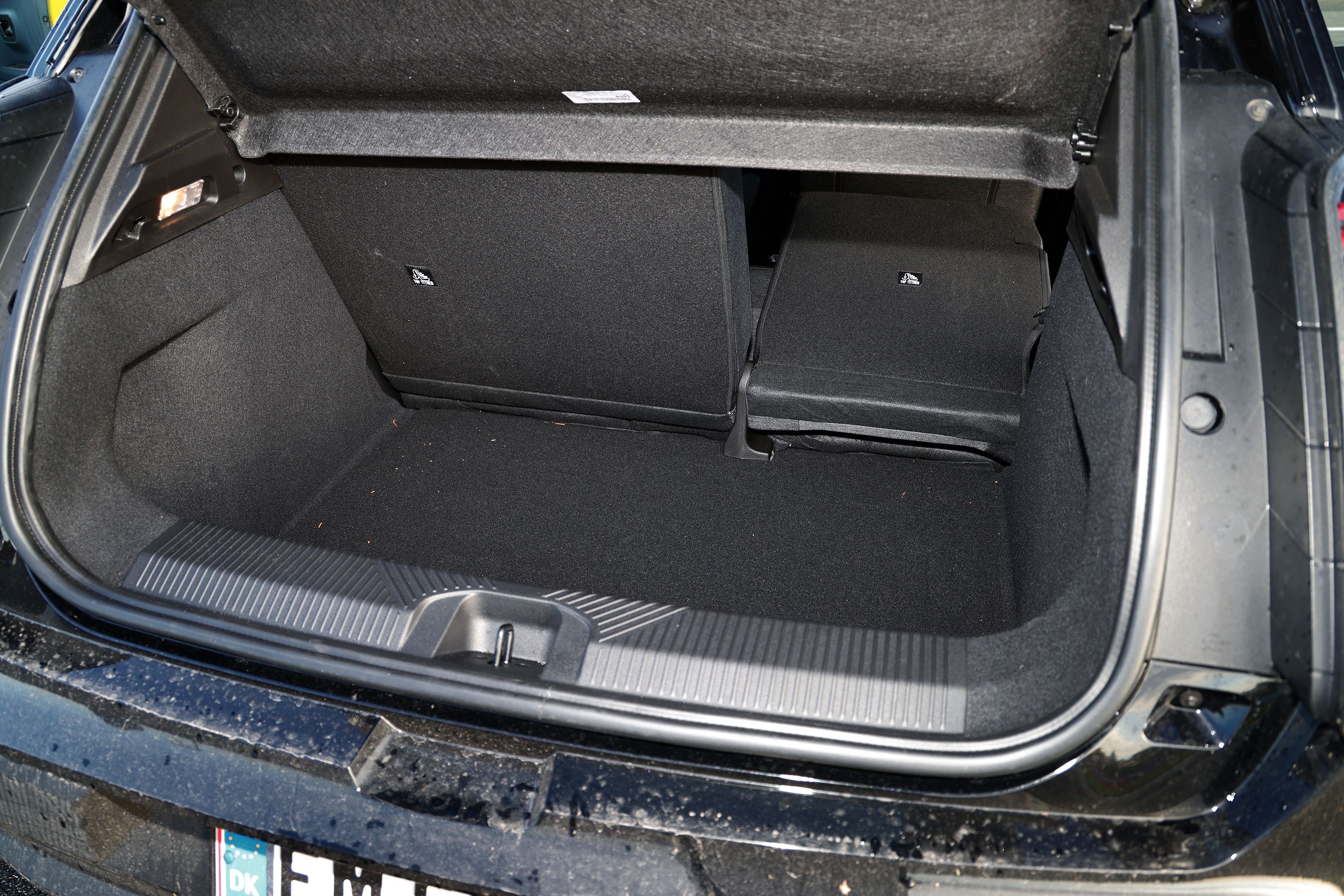 Bagagerummet rummer 326 liter, og bagsædets ryglæn kan foldes forover i to dele. Der er ikke et separat rum til ladekablet.