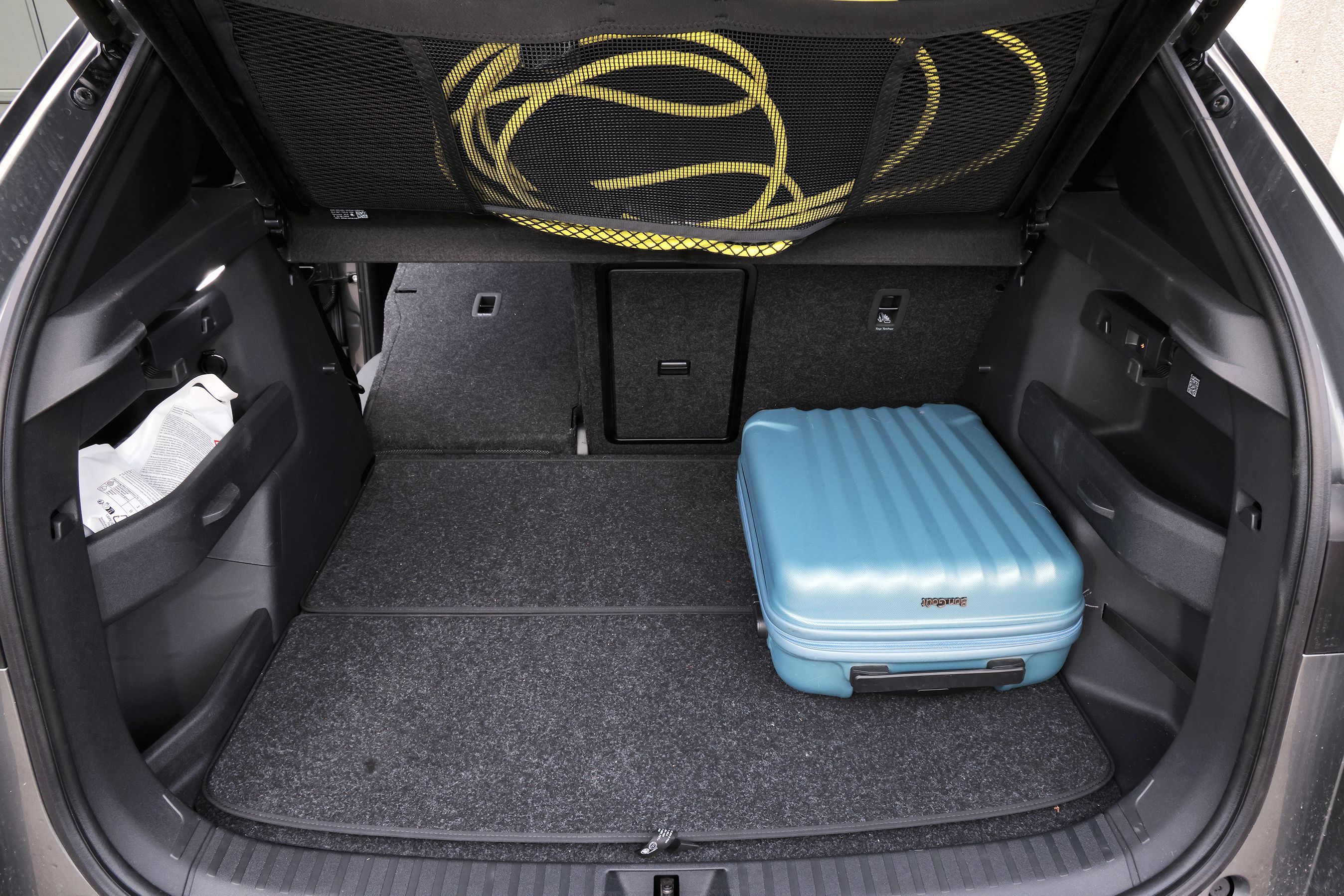 Bagagerummet er på 470 liter, og det har mange smarte funktioner. F.eks. kan ladekablet placeres under hattehylden, så det er let at komme til. Bagsædet kan foldes forover i tre dele. Bilen må udstyres med anhængertræk (8.995 kr.), og den må trække op til 1.000 kg.