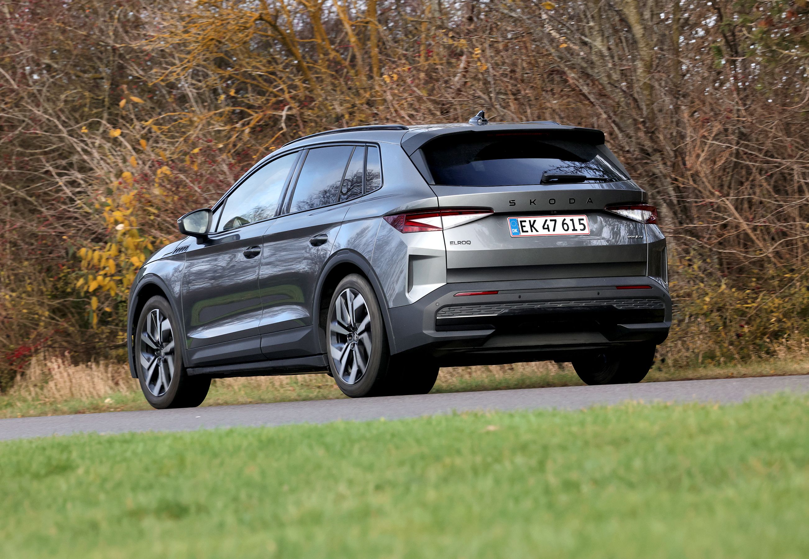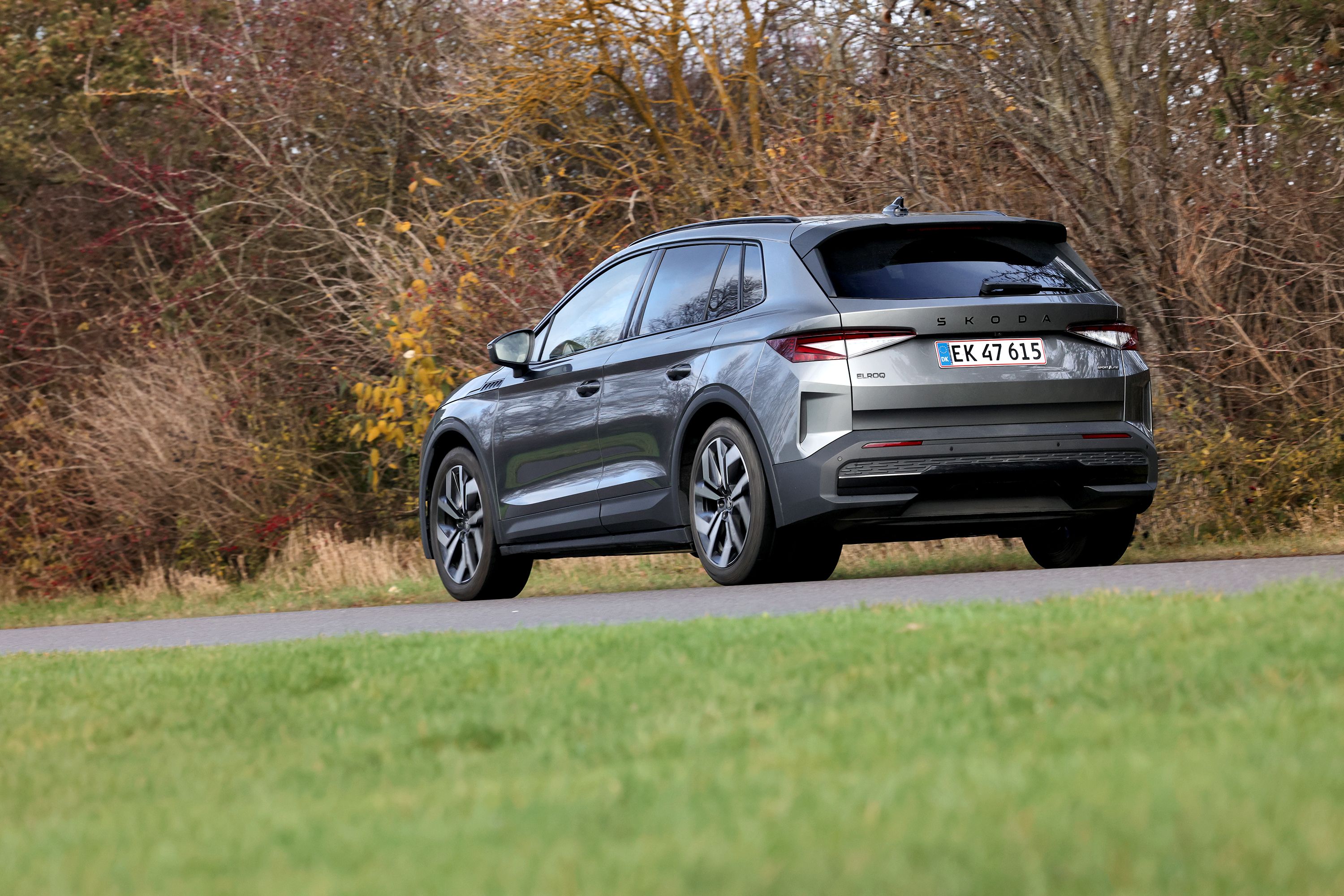 Skoda Elroq er i øjeblikket danskernes mest efterspurgte bilmodel. Her har vi testet Elroq 85 Sportline. Den koster 335.000 kr., men er her udstyret med en Advanced-pakke til 27.495 kr., anhængertræk til 8.995 kr. og grå metallak til 5.995 kr. Dermed lander prisen på 377.480 kr.