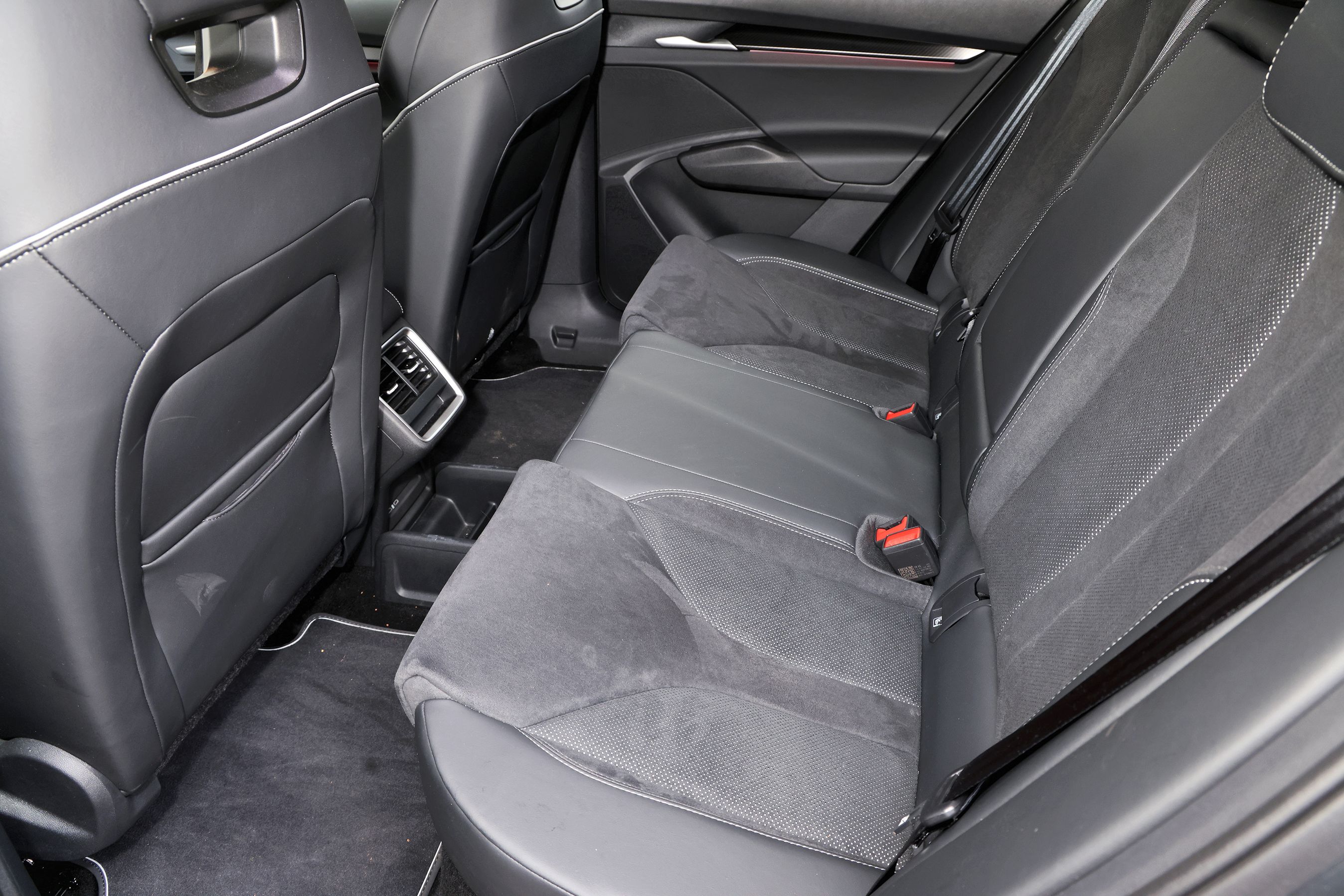 Der er udmærket plads ved bagsædet, uden at det føles overdådigt. Midterpladsen generes af konsollen ved gulvet. Der er friskluftdyser og mægtig fint lys.