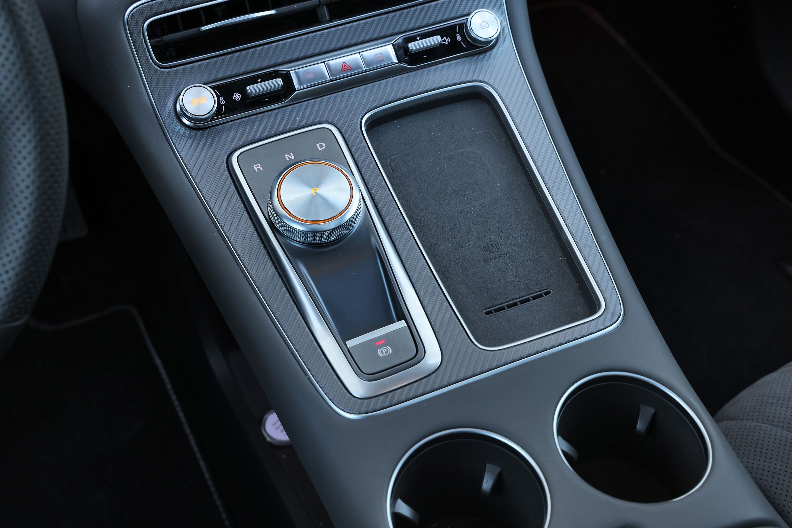 Der er mange lækre materialer rundt om førerpladsen. Det gælder bl.a. en alcantarabeklædt trådløs mobiloplader med køling.
