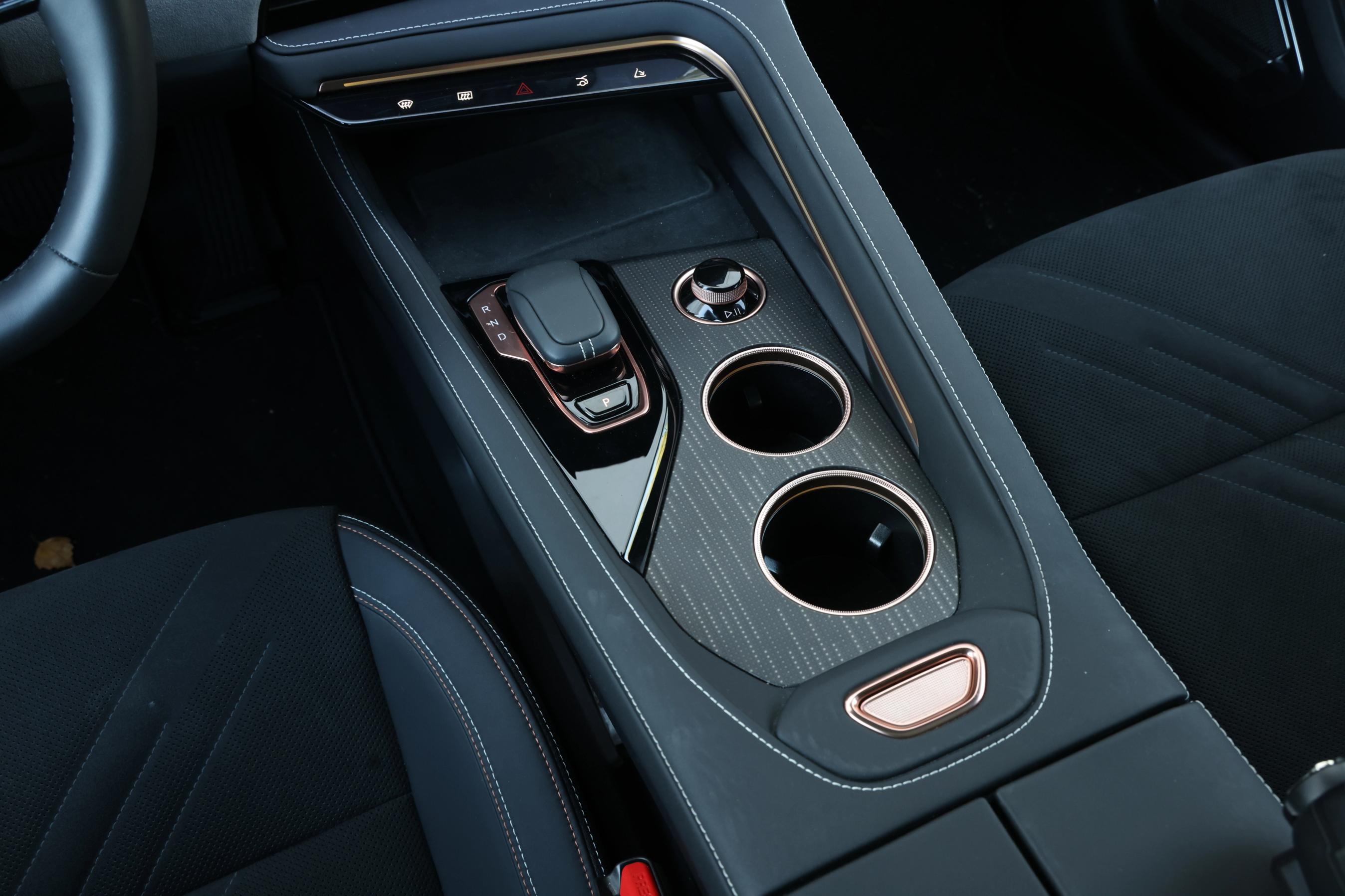 Den lille runde knap i midterkonsollen styrer lyden, og kan let nås fra begge forsæder. Hurtig-knapper til afdugning af for- og bagruden gør det let at aktivere disse dele. Gearvælgeren er elektronisk, og går selv i P, når døren åbnes.