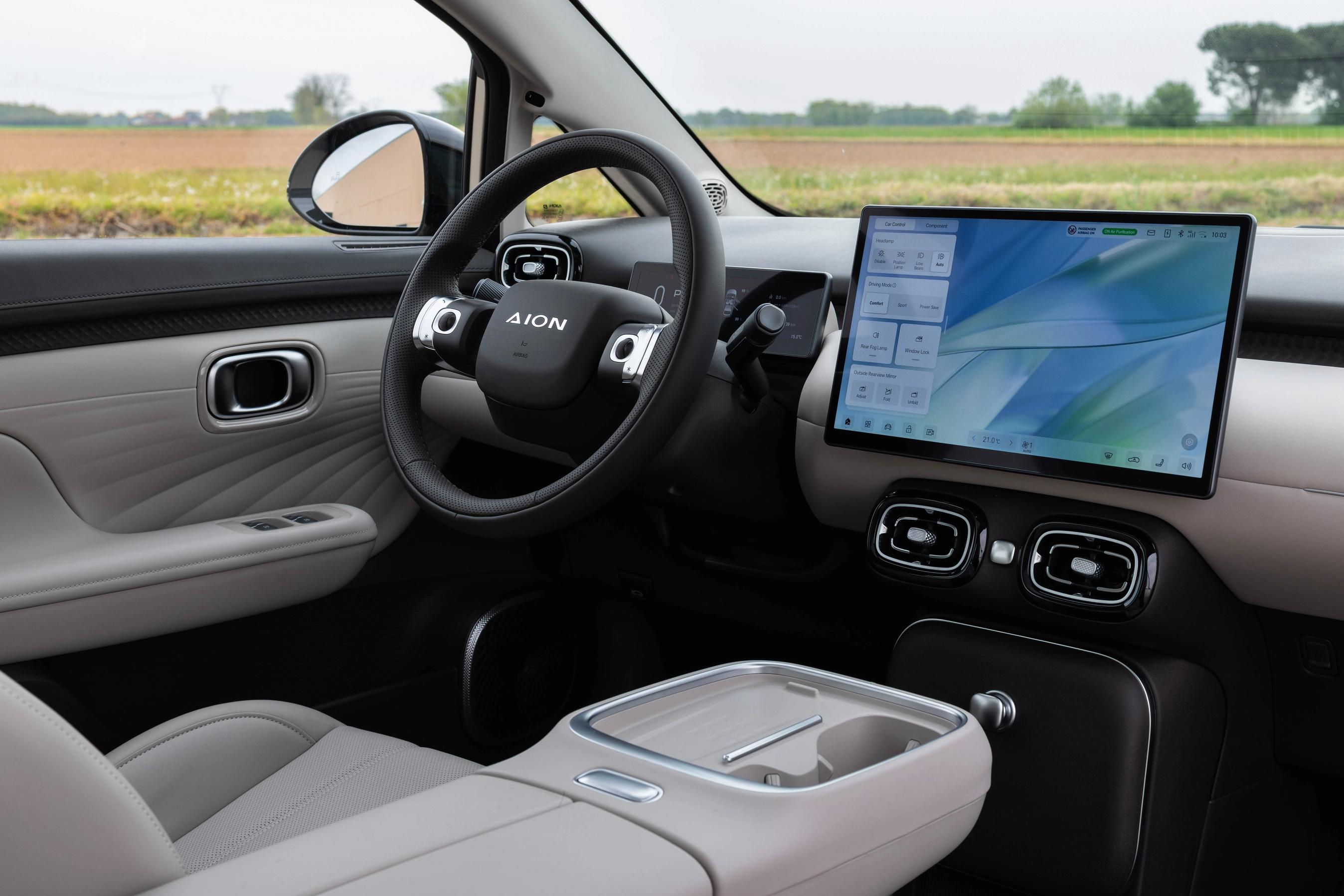 Årsagen er, at Aion har valgt at placere bagsædet lidt højere i kabinen end mange konkurrenter. Det giver en mere komfortabel siddeposition med bedre lårstøtte. Det er dog ikke ligeså godt som i traditionelle benzin- og dieselbiler, fordi batteriet i vognbunden optager meget plads.